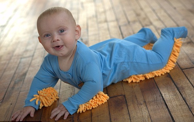 Ogni mamma sa quanto è importante la pulizia del pavimento quando si ha un bambino che gattona per casa. E allora perché non affidare a lui questo noioso compito? Non stiamo parlando di sfruttamento minorile, ma della “mocio-tutina”. Questo abitino per bimbi nella parte anteriore è dotato di alcune setole morbide che lucidano il pavimento, così mentre il vostro pargolo gattona il parquet splenderà.