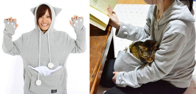 Prodotta dalla ditta giapponese Unihabitat questa felpa vi permetterà di non separarvi mai dal vostro gatto trasformandovi in una vera e propria “mamma gatta”. Dotata di cappuccio con tanto di orecchie, la felpa ha un marsupio in cui potrete riporre il vostro animale domestico (il tutto al prezzo di 45 euro circa). Chissà se i nostri amici felini sono entusiasti di questo bizzarro indumento.