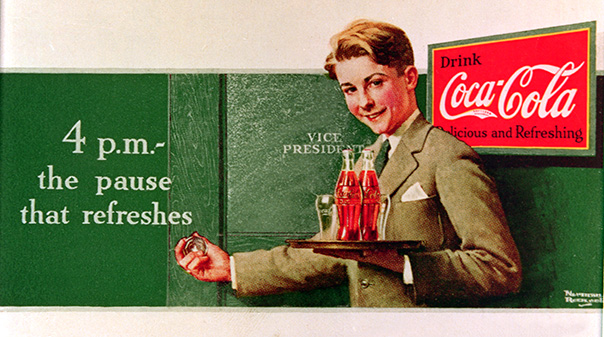 La bevanda, ideata l’8 Maggio del 1886 dal farmacista statunitense John Stith Pemberton, nasceva per commercializzare un prodotto che miscelava noci di cola e foglie di coca,rendendola protagonista di un prodigioso passaggio attraverso una società in continuo mutamento, in un secolo che ha prodotto più di quanto abbia consumato, in termini artistici e sociali. Il simulacro del 900, che ha abbattuto il muro delle differenze di classe ispirando movimenti culturali ed artistici, è diventato il simbolo della comune, in simbiosi con movimenti post moderni e neo dada, di una società dove è l’oggetto ad ispirare l’arte e non viceversa; in questo contesto storico, la Pop Art ne recepisce a pieno l’aspetto comunicativo, seriale e propagandistico, rendendo arte una produzione concettuale, vicina al capitalismo post industriale. Non a caso i più importanti esponenti dell’arte popolare, Andy Warhol su tutti, l’hanno assurta ad iconica immagine delle loro opere principali e rappresentative; la serialità di Warhol, concetto di democrazia sociale applicata all’arte, trovava nell’involucro della Coca Cola il più espressivo momento di propaganda comunicativa in rappresentanza delle esigenze visive e commerciali del nuovo movimento culturale. La produzione in successione, rimarcava un concetto di appartenenza, in virtù del quale, l’operaio e il capitalista, il personaggio famoso e l’uomo comune potessero avere facile approccio allo stesso prodotto, unico ed accessibile a tutti. Non solo Warhol, ma in tempi non sospetti anche Norman Rockewell, uno tra i più importanti illustratori americani,aveva intuito le grandi potenzialità artistiche del marchio Coca Cola, nelle sue opere di rappresentazione della vita quotidiana e dei bisogni ormai primi della società moderna, espressione di un boom economico figlio della nuova rinascita. Anche il cinema, così come la pittura, ha individuato un momento di forte impatto narrativo attraverso il marchio Coca Cola, immortalandolo in scene topiche e simboliche, più impressionanti del tecnicismo di un movimento di macchina o di un montaggio alternato. Nel capolavoro fantascientifico “Blade Runner”, il regista britannico Ridley Scott inquadra un cartellone enorme con il marchio rosso ben visibile che vive,fonde e si confonde con uno scenario futuro e fantasioso; una società possibile, nella quale la comunicazione e il marchio “Coca Cola” trovano visibilità eterna, a celebrare un momento di continuità spazio temporale credibile e convincente. Ancora un legame forte e simbolico del connubio Coca Cola-Arte cinematografica, è presente in uno dei momenti espressivi tra i più suggestivi del film indipendente tedesco “Good bye Lenin!”, opera fantasiosa sulla caduta del muro di Berlino e la successiva nascita della Germania unita attraverso la mescolanza dell’est comunista con l’ovest capitalista.