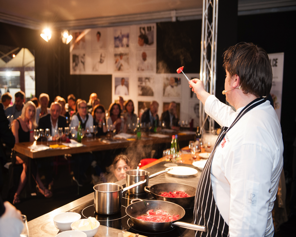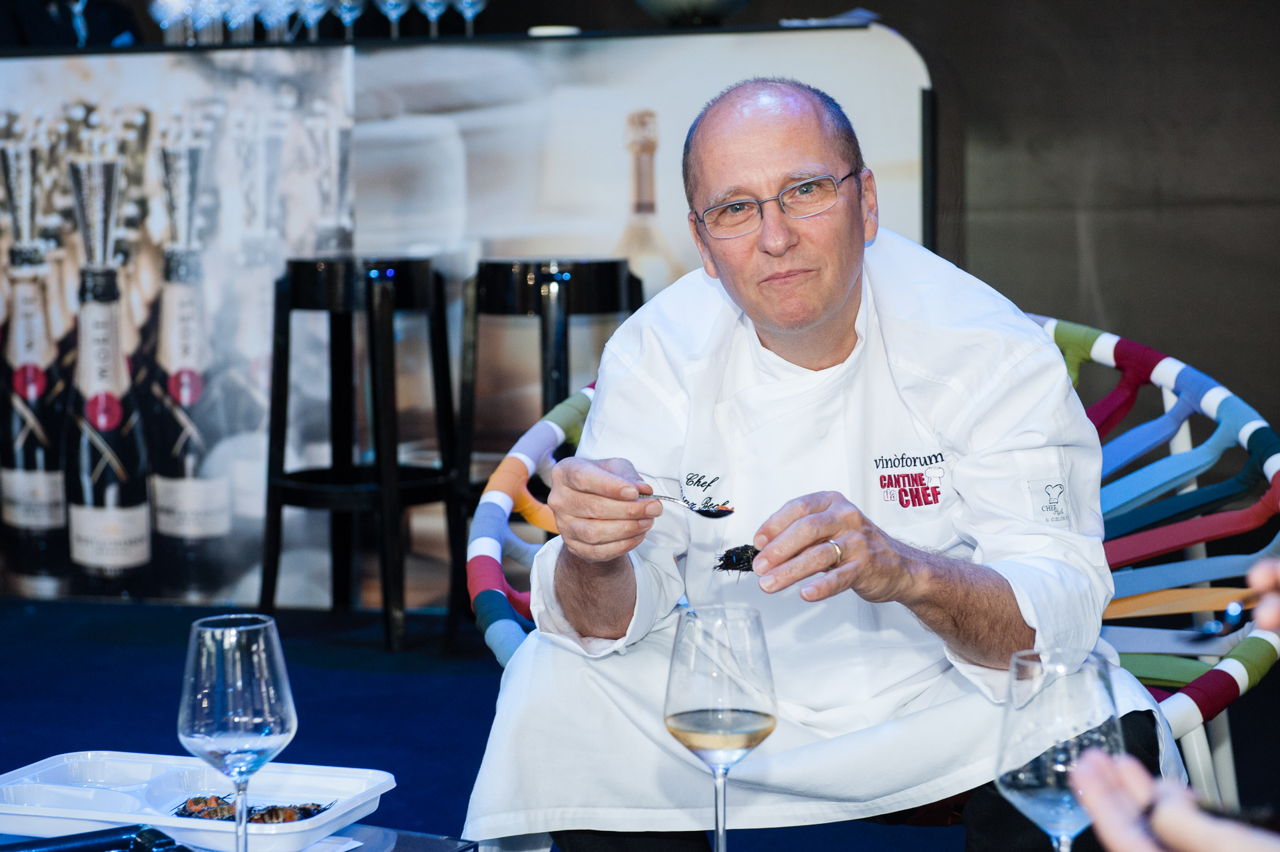 Ma le proposte gastronomiche del Vinòforum 2016 non sono finite qui, e la manifestazione ha invitato oltre 30 grandi chef stellati italiani e internazionali ad esibirsi in vere e proprie esclusive cene evento nell’ambito delle così denominate,“Cantine da chef” in cui un grande chef internazionale presentava un menù in abbinamento ad i vini di una grande cantina e “Chef’s table” in cui 20 fortunati possono gustare piatti stellati accompagnati da grandi champagne. Si tratta in pratica di cene esclusive, in cui (a partire da 38 euro in su) anche i palati più esigenti potranno godere di una vera esperienza multisensoriale, alla scoperta di piatti di altissima cucina raccontati e accompagnati in tavola con video e musica dagli stessi protagonisti, gli chef stellati. Qualche nome?
