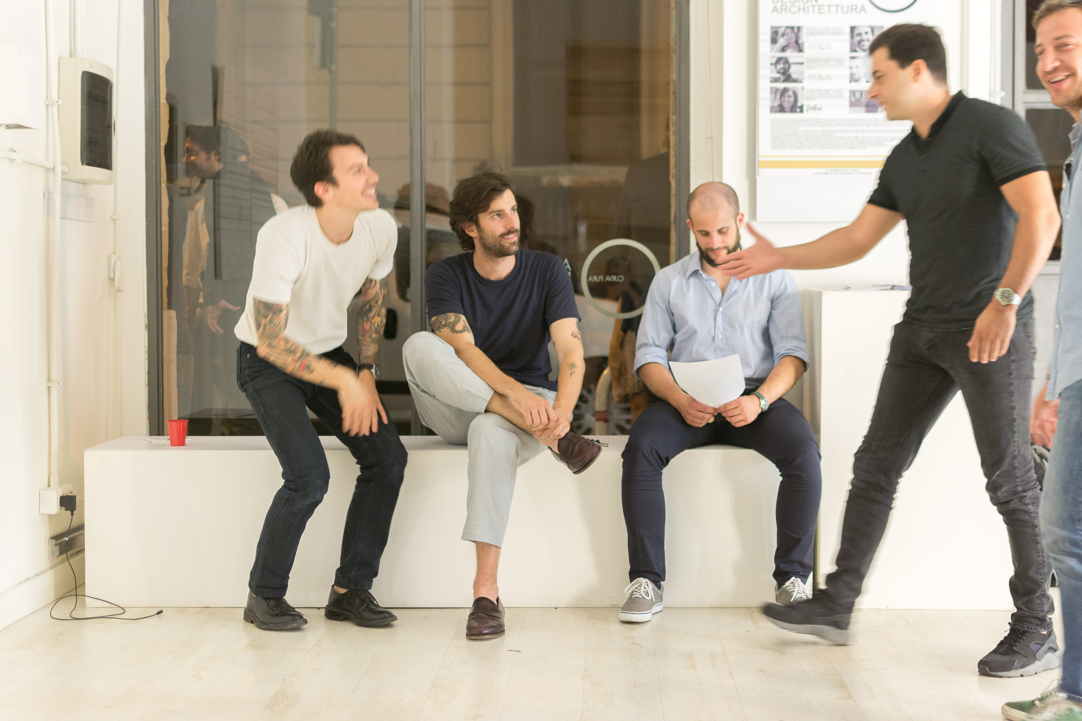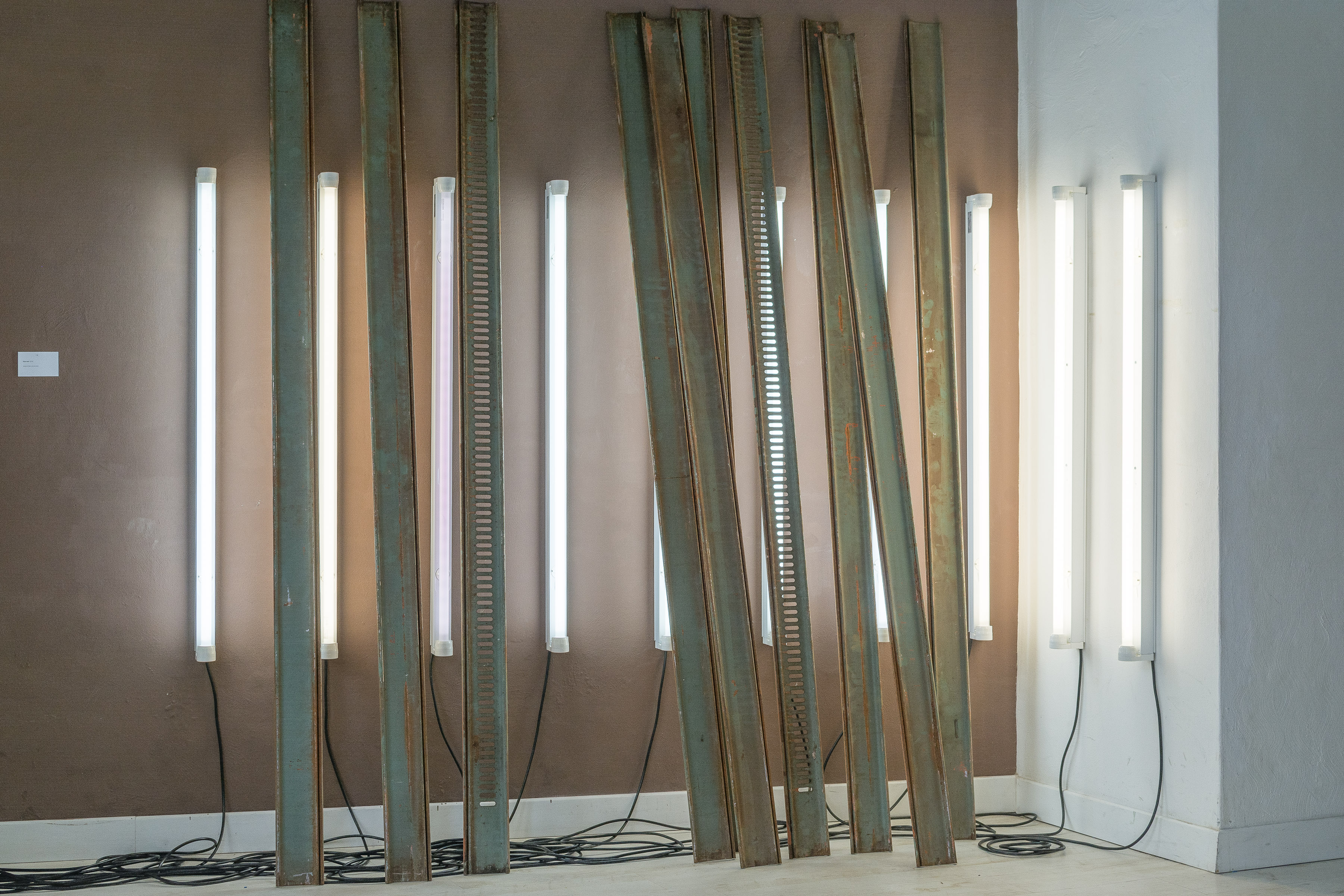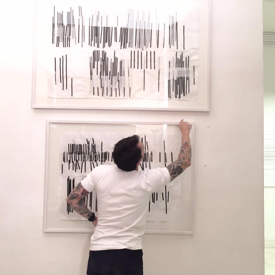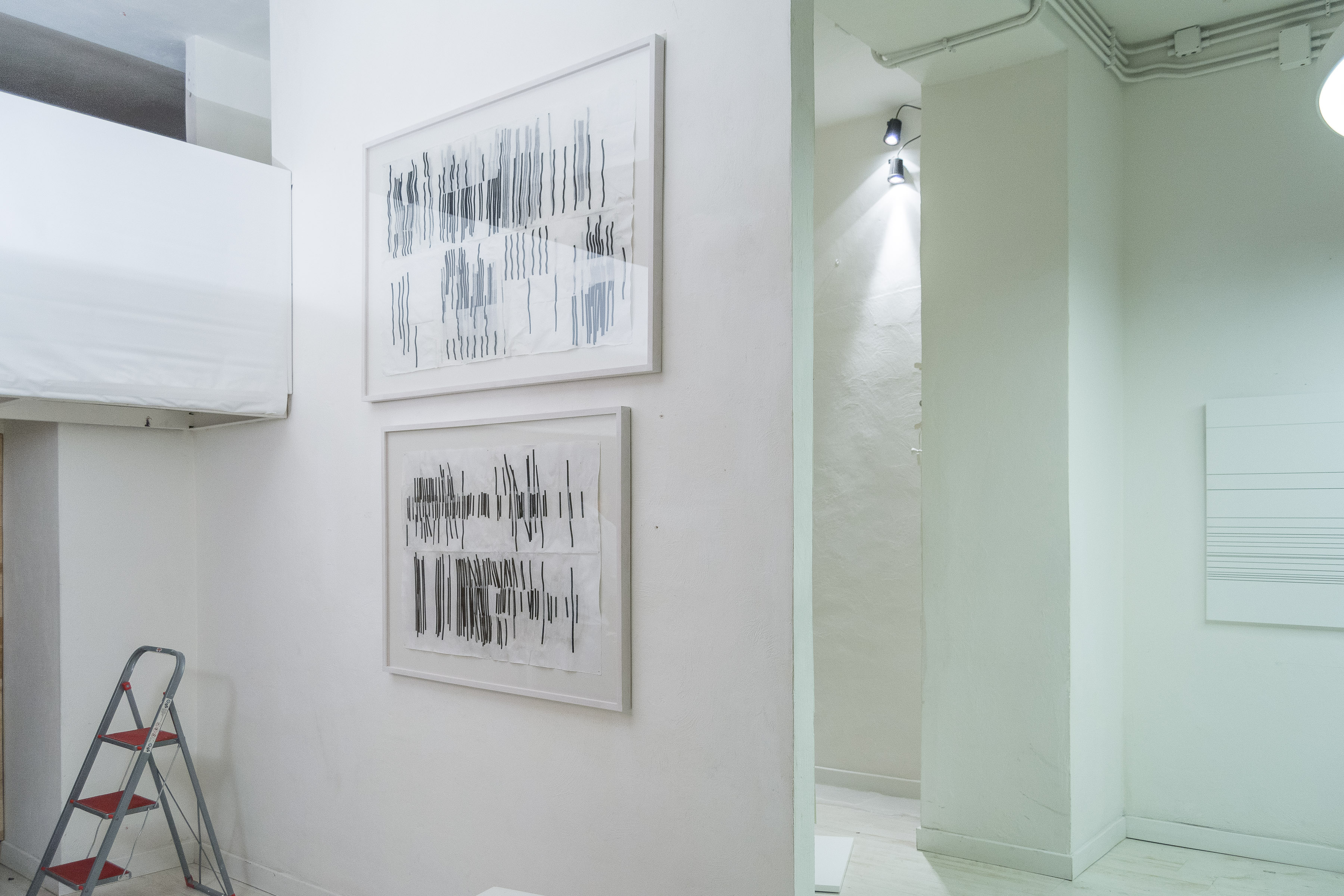 Alla circospezione del grande scrittore tedesco sulle corrispondenze tra musica e pittura il tempo ha risposto implicitamente con la sfida, a partire da quella lanciata da artisti come Vasilij Kandinskij, Paul Klee e Aleksandr Skrjabin – ciascuno a suo modo e nell’ambito specifico della propria disciplina –, fino alle contaminazioni percettive dell’arte multimediale. La ricerca di Andrew Iacobucci si profila come un intrigante orizzonte euristico, in cui da un approccio intuitivo, analogico, ma non per forza rigoroso, si consegue un risultato che invece fa del rigore il suo punto di forza e la sua leggerezza assiomatica. Da un’idea di rappresentazione fisica del suono e di un’architettura al suo grado zero (strutture elementari, pesi e contrappesi) nasce il lavoro “///“.