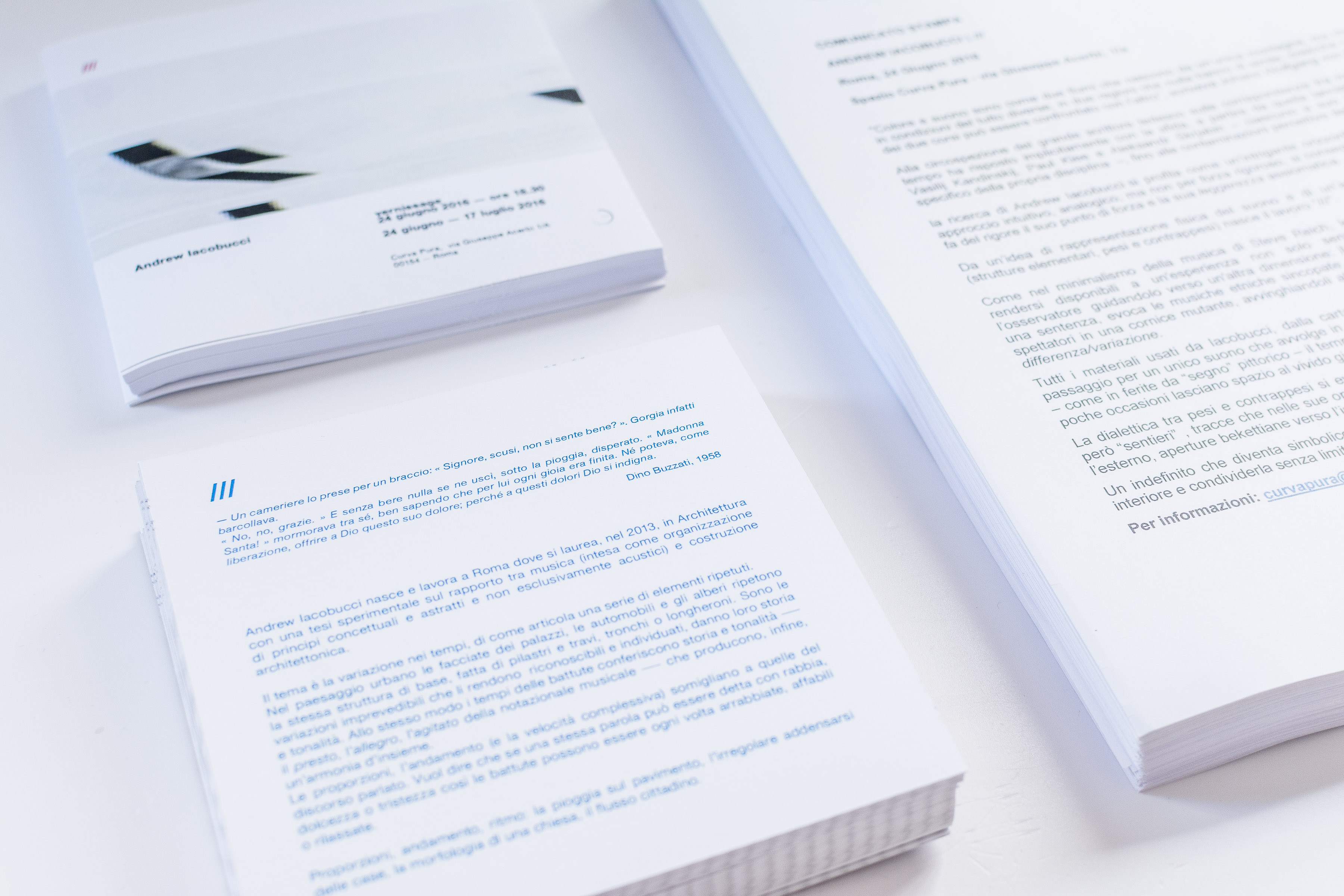 Tutti i materiali usati da Andrew Iacobucci, dalla carta al “rust” del ferro sono solo dei mezzi di passaggio per un unico suono che avvolge in un’armonia che dilata lo spazio e ne scandisce – come in ferite da “segno” pittorico – il tempo, in un susseguirsi di bianco e nero che solo in poche occasioni lasciano spazio al vivido gioco di altre cromie. La dialettica tra pesi e contrappesi si evolve fino alla totale assenza del nero, mantenendo però “sentieri” , tracce che nelle sue opere realizzate su lastre di MDF diventano binari verso l’esterno, aperture bekettiane verso l’inconscio. Un indefinito che diventa simbolico, tre linee in diagonale per raccontare la propria visione interiore e condividerla senza limiti. Le opere di Iacobucci saranno presenti presso lo spazio espositivo Curva Pura dal 24 giugno al 17 luglio.