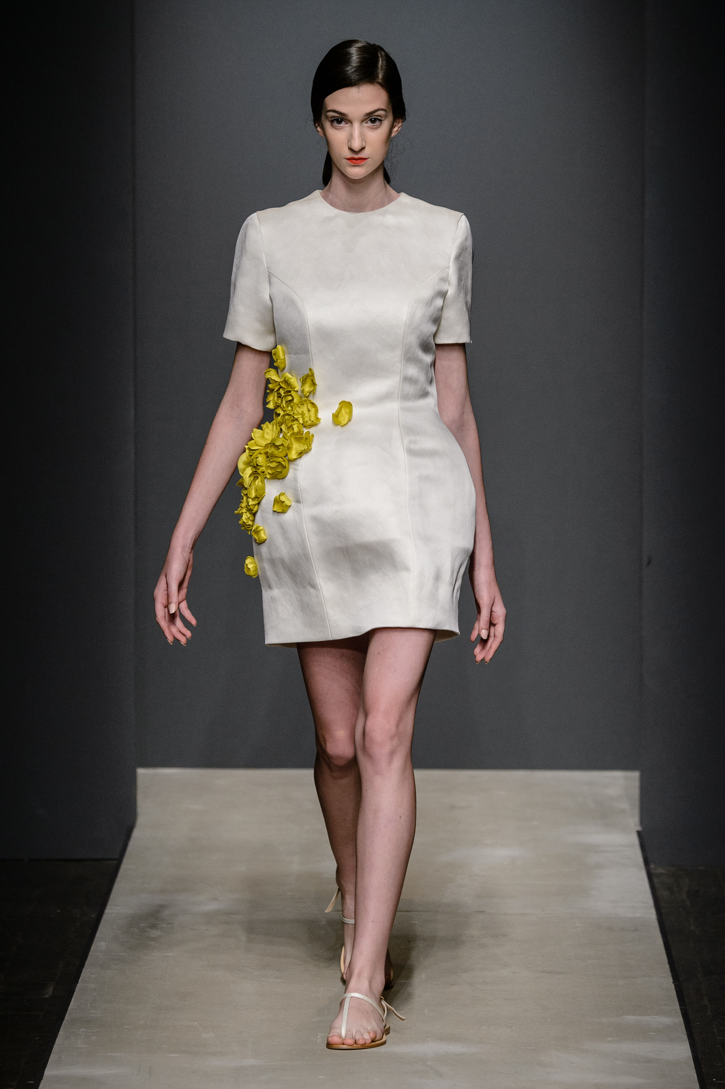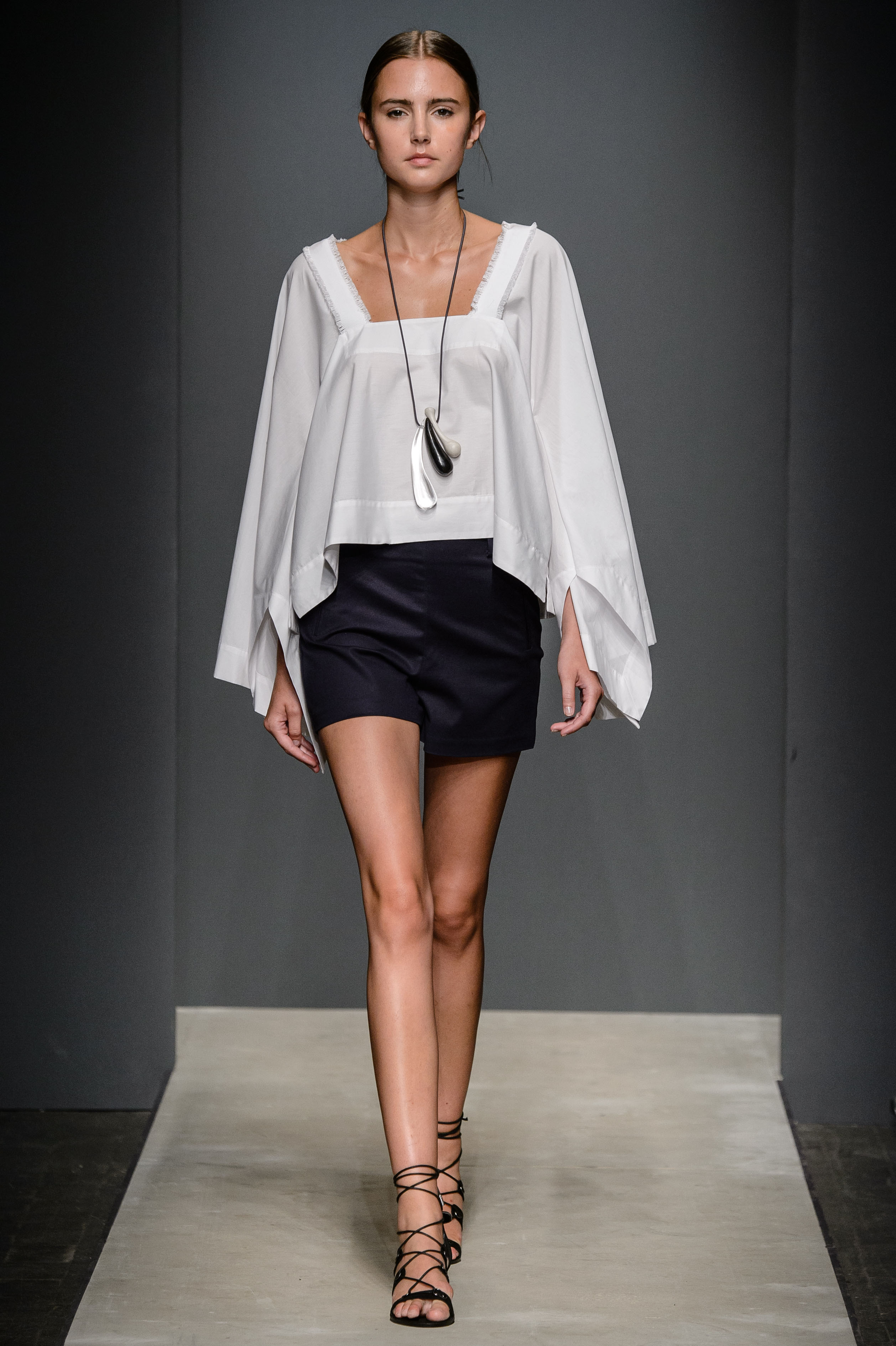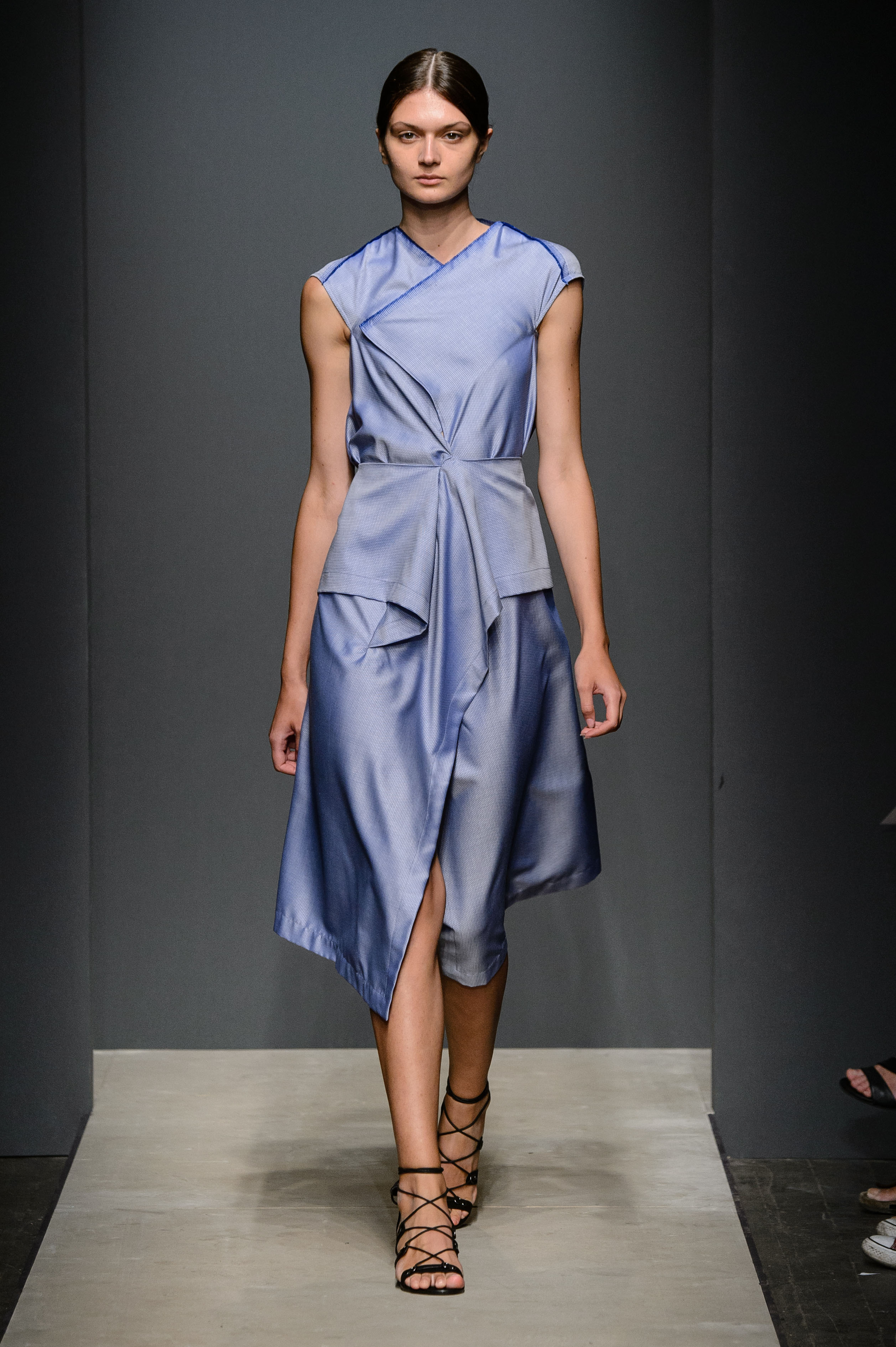 Dal Rinascimento al Neoclassicismo: il designer Angelos Bratis per la sua Doric | SS 2017 rende attuale il gusto per il drappeggio d’età classica, romana ed ateniese: linee fluide ed essenziali si plasmano in ariosi kaftani e fluidi pepli o nel modernismo di top e gonne in sbieco; un guardaroba che si allinea alle esigenze della donna moderna, a dispetto di forme, misure e dell’orario del giorno, grazie all’eliminazione del superfluo, al servizio di una semplicità eterea e pratica.