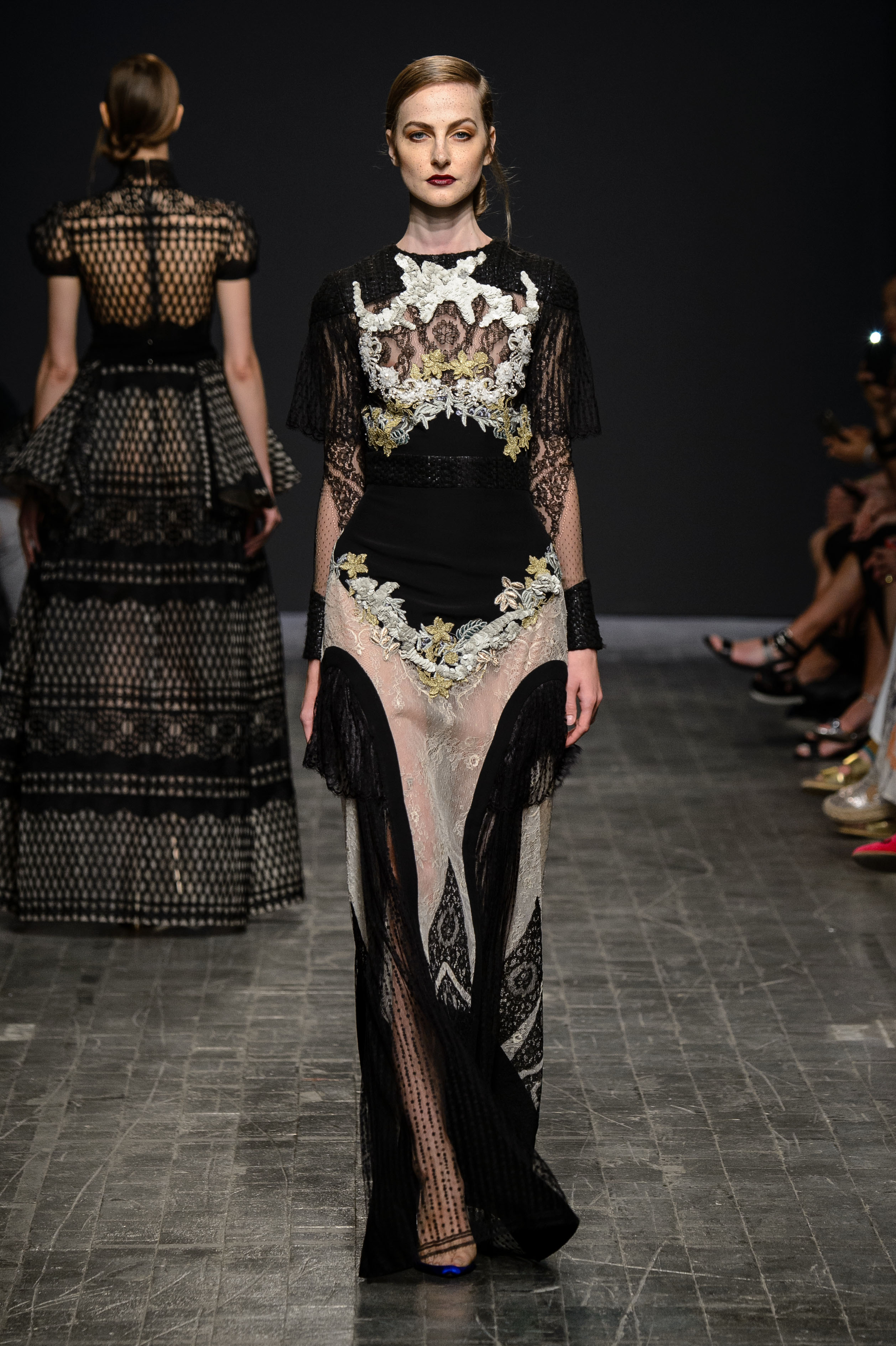 Uno sguardo negli archivi impolverati dei maestri d’alchimia d’età medievale ed ecco nascere una storia nella mente dello stilista, quella di Sofia The Goddess, eroina capace di scoprire l’elisir di lunga vita e tenerlo segreto – nascosto in una mela, precisamente – sino ai giorni nostri. Il volto della donna è quello impenetrabile delle modelle in sfilata, la fantasia quella di Hussein Bazaza, giovane designer libanese, classe 1990, primo ad esibirsi nella seconda giornata della kermesse d’alta moda capitolina AltaRoma 2016, sparsa per la città fino all’11 luglio. Dal passato al presente, dalla leggenda alla cat walk, la passerella di sabato si offre come un tragitto tra epoche, immersa in suggestioni del passato cucite magistralmente agli abiti dai suoi protagonisti.