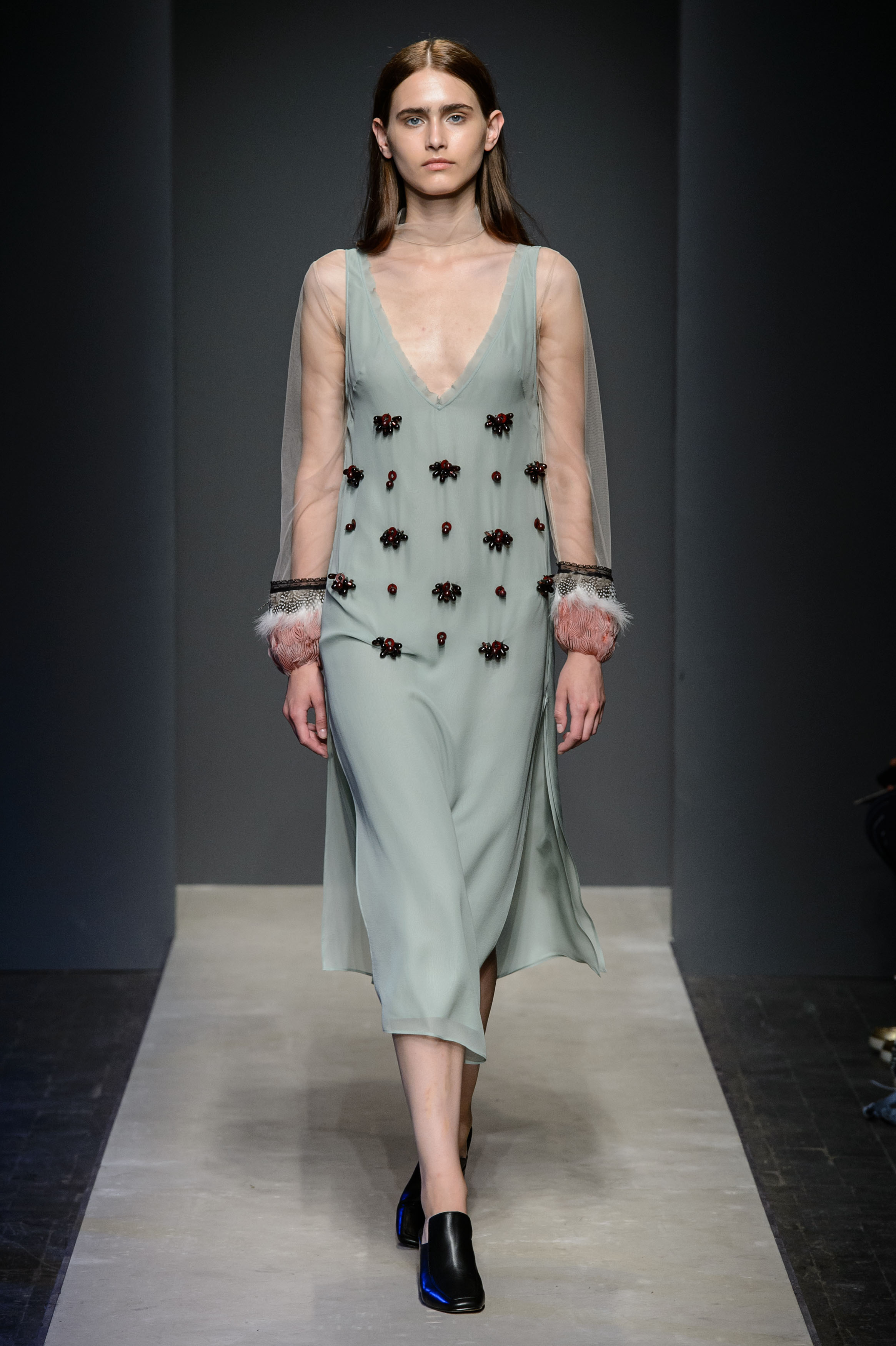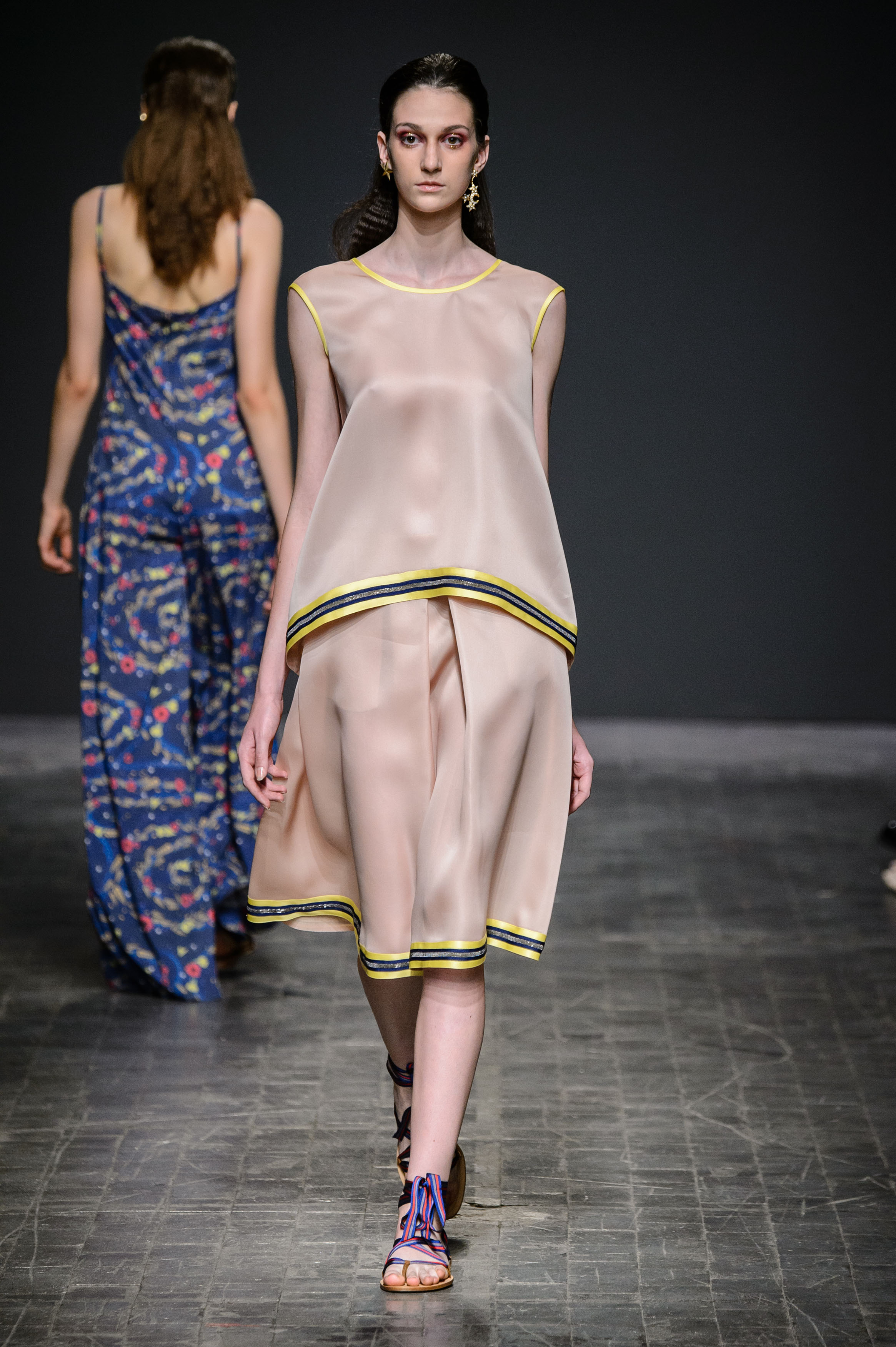 Dall’arte al sogno, il viaggio di Nativa | SS 2017 del marchio Greta Boldini (disegnata dallo stilista Alexander Flagella) indaga invece il ragionamento che rincorre lo studio dei nativi americani, non soltanto riguardo i loro simboli onirici e determinanti di una fascinosa cultura popolare, ma anche circa la capacità intrinseca di studiare le origini fin nel profondo di ogni se. Non si può quindi che cominciare dal concetto di sottoveste, punto di partenza per una passerella iper femminile, iper sofisticata, nei plissè che prendono la mano a tessuti quali jaquard di cotone, pizzi macramé , satìn, georgette e nelle organze di seta che lasciano il passo a cotoni di panama tulle di cotone e cady di viscosa.