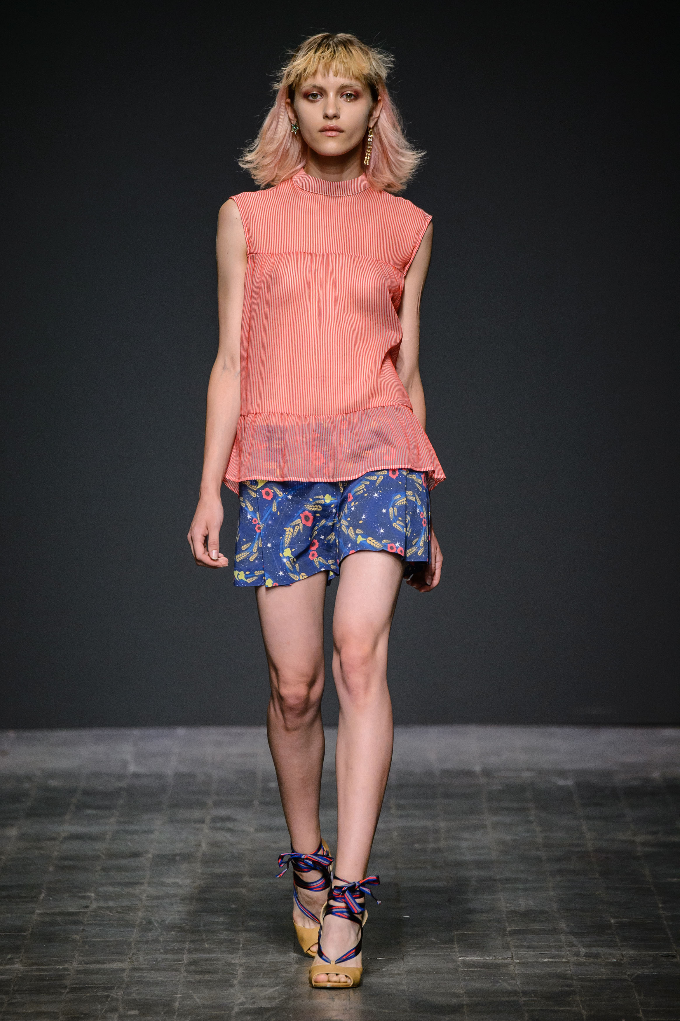 È dulcis in fundo che arriva l’amore, alle 17. E precisamente quello tra i due protagonisti della passerella della Quattromani | SS 2017 (va segnalato che a loro – i designer Massimo Noli e Nicola Frau – e a Boldini spettano i più copiosi applausi della giornata dal pubblico in front row): l’omaggio alla terra sarda, alla leggendaria sa bia de sa palla (la Via della Paglia) in cui si immagina crescere la passione tra due amanti impossibili, è nei capelli tinti di biondo delle modelle, nel rosso dei papaveri, nelle sfumature di blu dei panorami notturni, nei colori che dipingono long dress e cocktail dress, top in maglia e lurex, jumpsuite e pencil skirt. Un vero e proprio inno al panteismo naturalistico in forma d’abito.