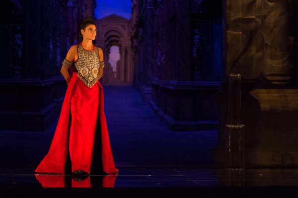 Valeria Solarino regala i suoi intensi occhi scuri a Palamede, la bellezza classica ed androgina della sua figura rende perfettamente il carattere semi-divino di Palamede ed ammalia tutto lo stadio. La sua interpretazione è appassionata e ricca di forza. Il suo monologo emoziona gli spettatori e impressiona la fierezza e la grazia con cui interpreta il personaggio. Lo spettacolo si conclude tra gli applausi scroscianti del pubblico, che alla fine del “racconto” è consapevole di aver vissuto un’esperienza unica, quasi catartica. Abbandoniamo lo stadio consci di avere partecipato ad un rito collettivo, che rievocando le vicende di Palamede restituisce a tutti noi l’ancestrale legame con le radici del pensiero moderno.