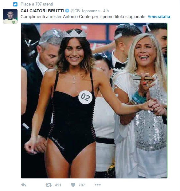 Antonio Conte vince anche il titolo di miss Italia. Rachele Risaliti fa impazzire il web