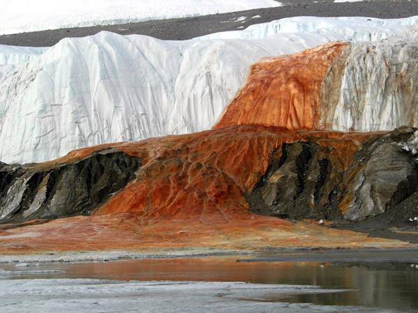 Il gruppo di geologi che arrivò in questa terra remota nel 1911, rimase decisamente stupito alla vista di questo fenomeno: una lingua rossa distesa sul ghiacciaio Taylor, evento decisamente insolito che colpì subito gli esperti che si trovavano sul luogo. La prima spiegazione che questi diedero fu la presenza di alcune alghe “coloranti”. Più recentemente si è scoperto, sconfessando la tesi precedente, che il colore rosso è dovuto all’ossidazione di una particolare comunità microbica riuscita a popolare un bacino situato 400 metri sotto la coltre di ghiaccio alcuni milioni di anni fa: rimasti intrappolati nelle profondità antartiche, in compagnia di ferro e zolfo, questi organismi, non potendo servirsi della fotosintesi, sono riusciti ad evolversi raggiungendo caratteristiche dissimili da specie analoghe. Questi microbi sfruttano soltanto i minerali rimasti intrappolati con loro e al momento della fuoriuscita dell’acqua dalle profondità il ferro, prodotto del metabolismo di questi micro-organismi, si ossida con l’ossigeno circostante dando origine al tipico coloro rosso. Che queste condizioni biologiche possano ripetersi su pianeti diversi dal nostro? Alla scienza del futuro ogni risposta.