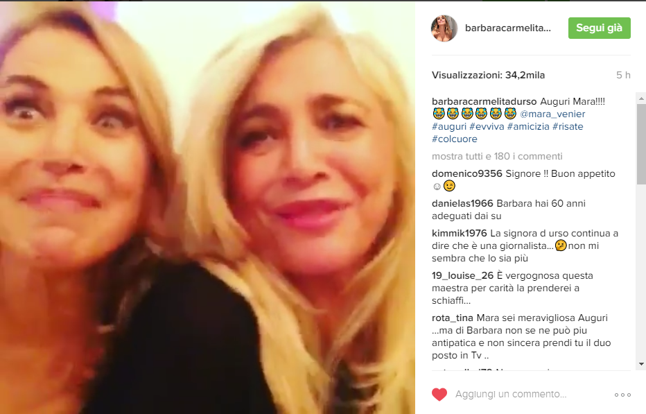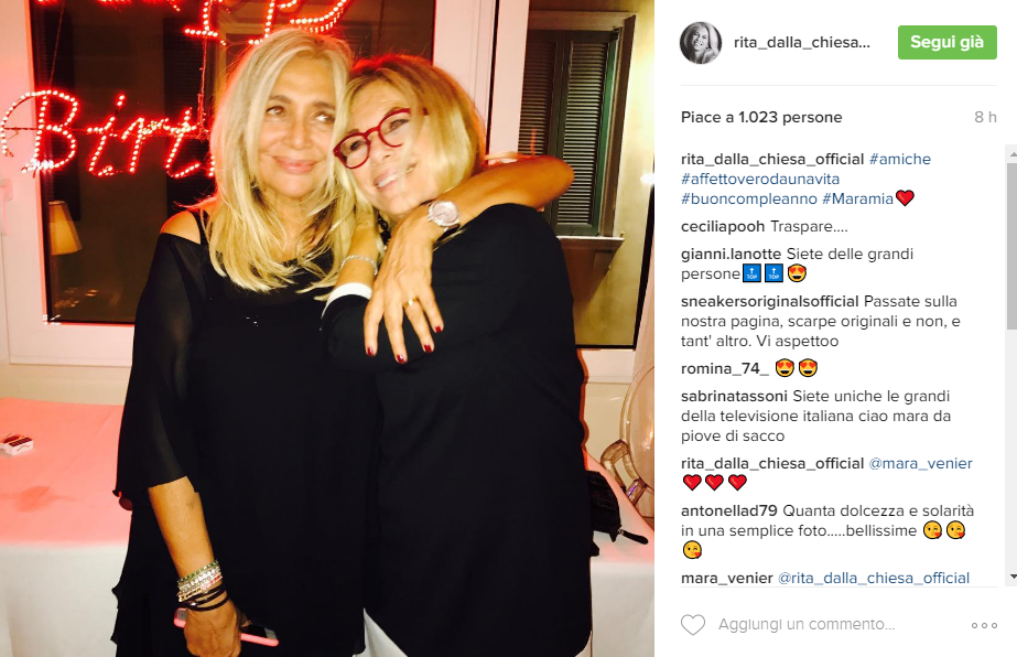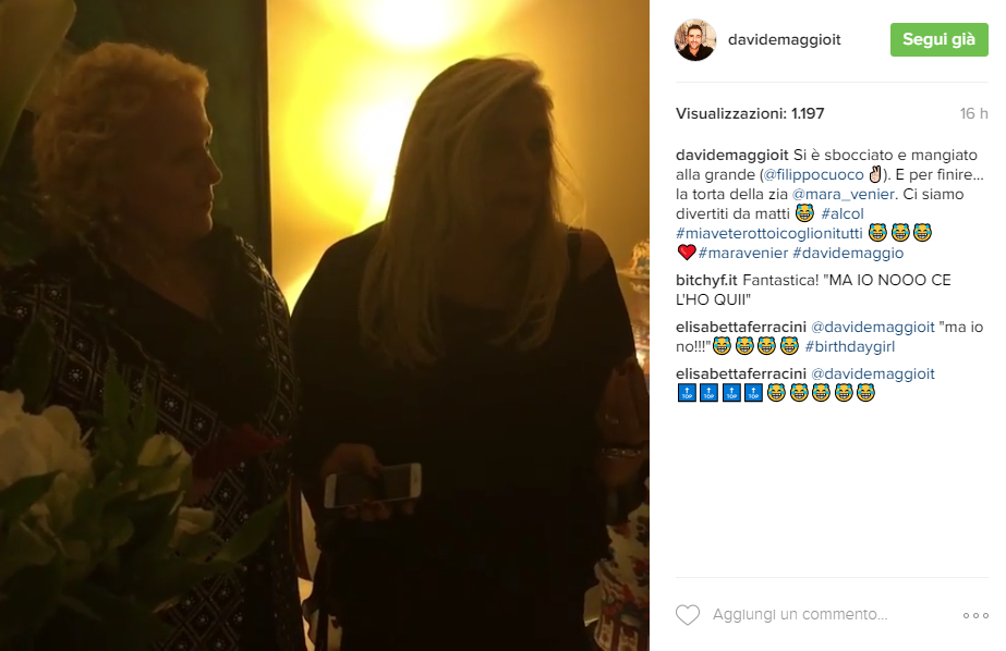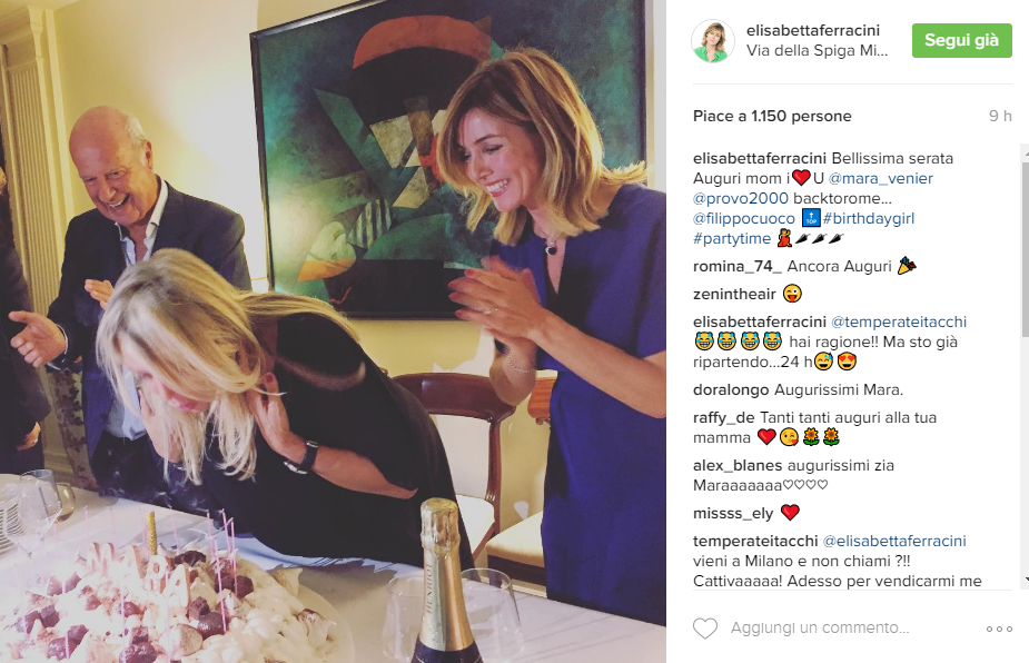 In serata, tra gli invitati al party c’era anche Jerry Calà, uno dei primi “amori famosi” della conduttrice. Con loro, gli affetti di sempre. “Dovevamo essere una ventina, ma credo che arriveremo a 100, perché stanno arrivando tanti amici da tutta Italia” ha raccontato la conduttrice intervenendo alla trasmissione radio Un giorno da pecora. Non sono passati inosservati: le (elegantissime) amiche Barbara d’Urso e Rita Dalla Chiesa, i giornalisti Roberto Alessi, Alessandro Sallusti e Davide Maggio, l’addetta stampa Betti Soldati. In cucina, ad occuparsi del menù, uno chef stellato: il mitologico Filippo La Mantia. Tra gli assenti, Simona Ventura, con cui Mara nei mesi scorsi si è riavvicinata dopo – pare – alcune tensioni. A metà serata arriva il regalo più apprezzato dalla festeggiata, quello di Sebastiano Lombardi – Direttore di Rete 4 e fidanzato di Elenoire Casalegno (assente giustificata perché “reclusa” nella casa del Gf Vip) – che si è presentato con una bici fiammante, nuova di zecca.
