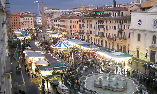 - Piazza Navona: Tra luci colorate, addobbi a festa, canzoni di natale e profumo di dolci, Piazza Navona, che è una delle piazze più belle al mondo, regala emozioni uniche e indimenticabili sotto le feste natalizie. I mercatini allestiti nella piazza della Capitale resteranno aperti fino al 6 gennaio, l’ultimo giorno in cui regaleranno emozioni indimenticabili anche ai bambini con l’arrivo della befana.