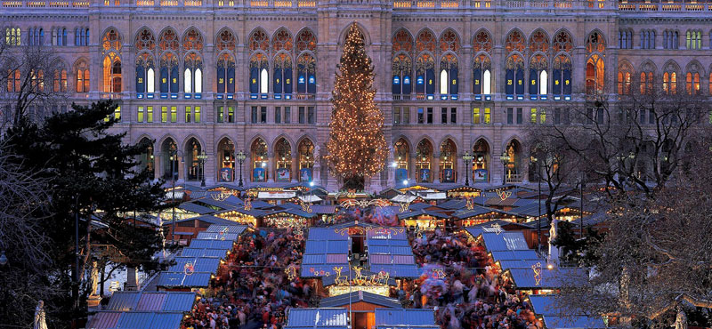 Questa città incantata, una delle più belle d’Europa, oltre ad essere il regno della principessa “Sissi”, offre uno spettacolo incredibilmente suggestivo durante le feste natalizie. La città addobbata a festa si riempie di colori, luci e profumi, che fanno da contorno ad uno dei mercatini di Natale più belli al mondo. Circa 150 bancarelle riempiono le vie ed i luoghi storici della città, dal castello di Schönbrunn al Kunsthistorisches Museum, dal bellissimo Wiener Christkindlmarkt, su Rathausplatz, al suo imponente Duomo, prende vita la magia del Natale. Gli stand a Veinna resteranno aperti fino al 26 dicembre.