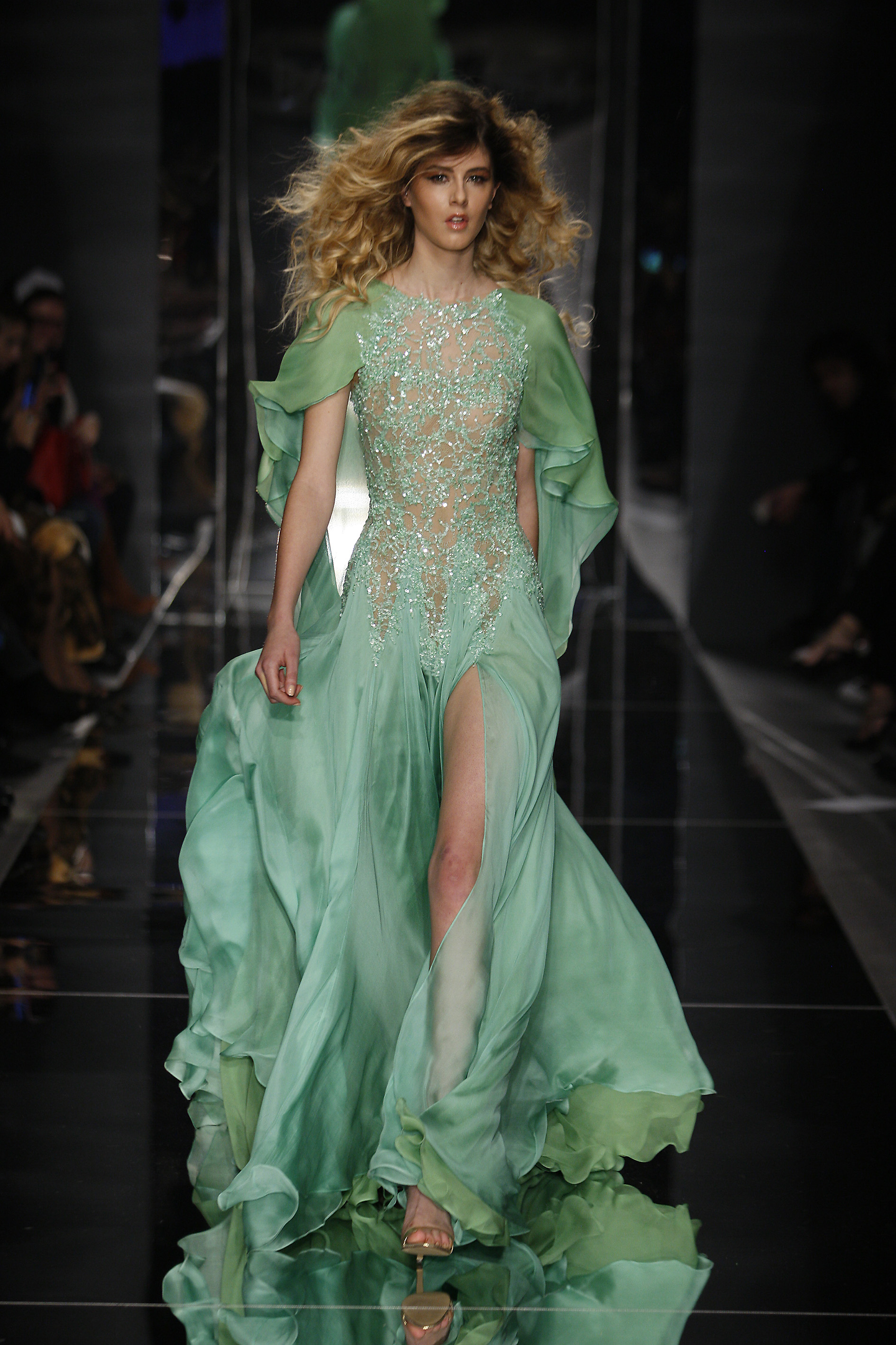 Ricercata e raffinata è anche la proposta di Rani Zakhem, dedicata a uno dei periodi storici più trasgressivi e stravaganti del XX secolo, gli anni 80. Lo scintillio della notte in discoteca, l’eco delle risate delle icone del tempo, Bianca Jagger e Dalidà, vere muse ispiratrici di questa collezione, e le atmosfere da jet-set rivivono nelle jumpsuit fantasia, negli ampi e voluminosi outfit dalle tonalità pure ed intense, negli abiti a sirena dalle scollature vertiginose e dai preziosi ricami floreali, che contribuiscono a plasmare e definire la personalità della donna Zahkem, sempre più elegante, dinamica e sicura di poter osare.