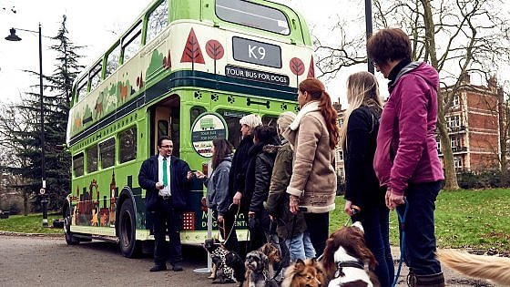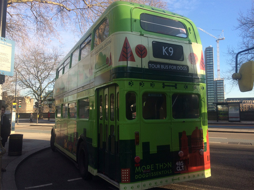 Si tratta del classico bus londinese a due piani, unica eccezione il colore rosso. Stavolta verniciato di verde e ribattezzato K9, dal nome di vari cani nel serial televisivo “Doctor Who”. Si può scegliere la fermata di partenza e di arrivo, così come scendere dove si vuole, magari per un pipì stop e per poi proseguire il tour. Le tappe includono soste a Hyde Prk, Kensington Garden, Green Park. Quando si arriva davanti a Buckingham Palace, una guida “informata sui fatti”, ricorda che la storia di Londra è piena di cani, basti pensare che la Regina Elisabetta II ha una vera vocazione per i corgies e che nel corso dei suoi 60 anni di regno ne ha avuti circa 30.