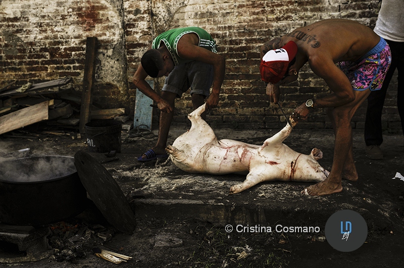 • “Massacro” di un maiale per strada: massacro inteso come sinonimo di pulizia. Ebbene si a Cuba, i maiali vengono puliti per strada, per un rito o per essere mangiati? Non cambia. Operazioni del genere non vengono mai fatte all’interno di una casa per questioni di spazio.
