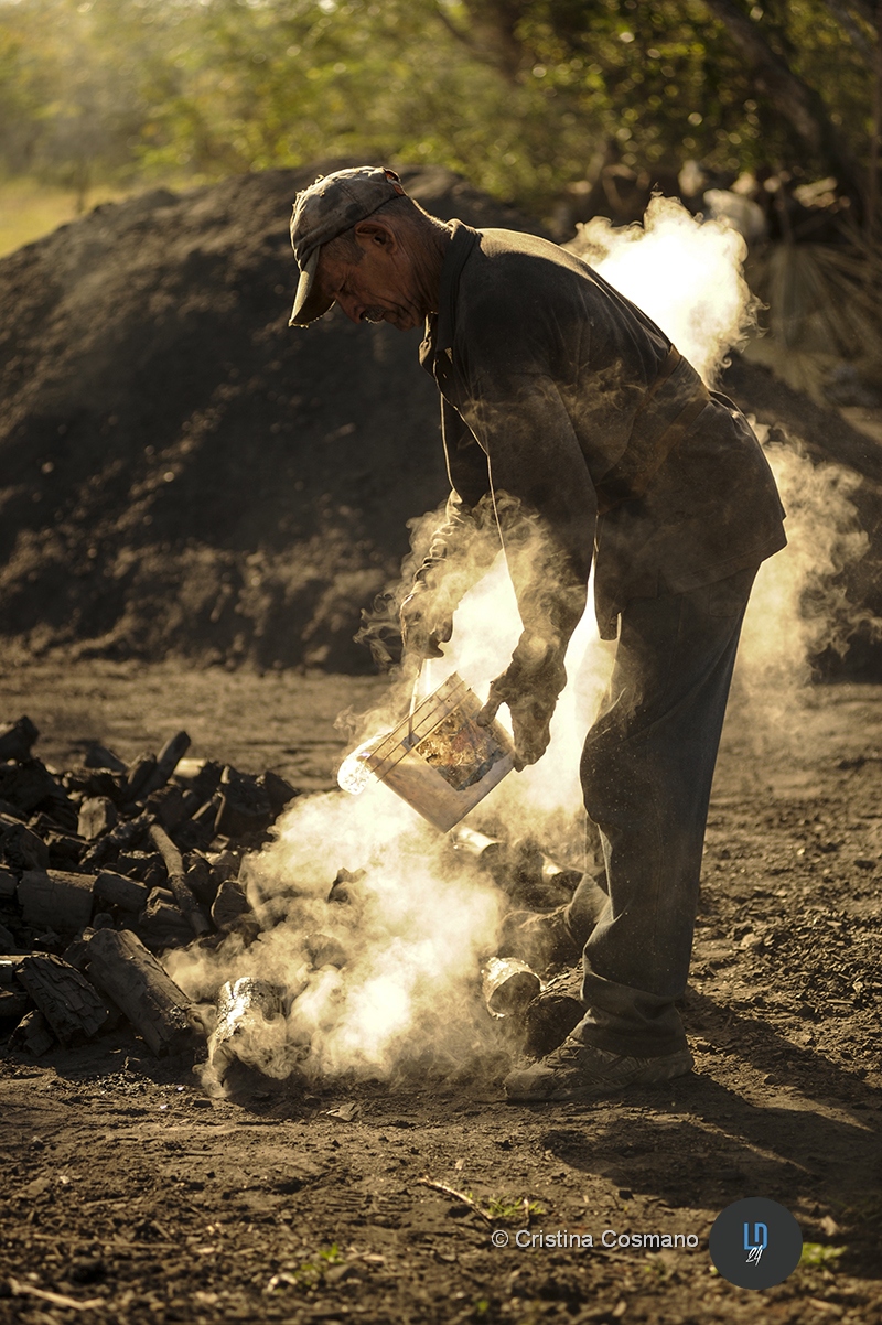 Un’altra realtà che riguarda il fumo, seppur in modo diverso è quella dei Carboneros che, in situazioni estreme, tra un caldo impetuoso e condizioni durissime producono il carbone, utilizzato poi in tutta l’isola di Cuba con fini differenti, ad esempio per cucinare. Il lavoro inizia con la raccolta della legna giusta che poi viene accatastata in un modo tale da creare un cumulo detto “mesa”, si riveste di erbe e foglie di palma, si copre tutto di terra ed infine si fa bruciare. Il cumulo poi va accudito senza sosta di giorno e di notte per una settimana e alla fine, smontandolo a poco a poco, il carbone si fa raffreddare, si spegne il fuoco e si raccoglie tutto in un enorme sacco. I carboneros lavorano tutto il giorno, per diversi giorni, sopportando un caldo tropicale e una devastante nube di fumo che li avvolge, ovviamente tossica per l’uomo. Tutto questo per quanto? 2,60 pesos (poco più di dieci centesimi) a sacco. Si tratta di un lavoro che aliena l’uomo, che distrugge corpo e mente, un lavoro arduo che ha come protagonisti sia uomini che donne.