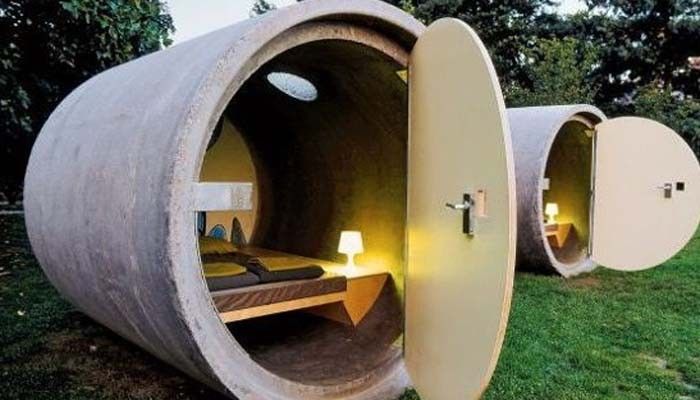 Tubi di cemento: tra le costruzioni riciclate non potevamo omettere il Das Park Hotel. Siamo in Austria dove qualcuno ha deciso di adattare tubi di cemento a camere d’albergo, seppure minimali.