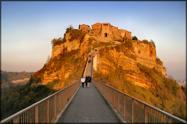 Munitevi di scarpe comode e di abbigliamento sportivo, Civita di Bagnoregio è raggiungibile solo a piedi! Una meta ideale per una bella gita fuori porta, respirando allo stesso tempo aria pulita, senza doverci continuamente imbattere nel traffico caotico della città, nel rumore dei clacson e in quella puzza sempre più forte dell’aria inquinata. Il Borgo che muore ha un non so che di romantico, tanto da appellarsi anche il titolo di oasi di pace senza smog. Si raggiunge facilmente tramite un ponte che unisce tra di loro le varie viuzze medioevali, il tutto percorribile solo a piedi.