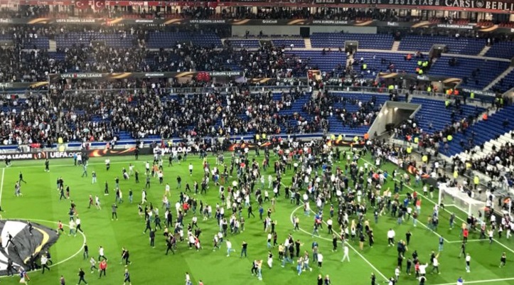 LIONE-BESIKTAS, TRAGEDIA SFIORATA – Settimana nera per le competizioni calcistiche europee, non tanto per la qualità dello spettacolo sportivo, ma per gli eventi drammatici a cui abbiamo assistito al di fuori del terreno di gioco. Se martedì la partita di Champions League tra Dortmund e Monaco era saltata a causa di alcuni ordigni lanciati contro il bus del Borussia, oggi a Lione, prima dell’andata di Lione-Besiktas, valida per i quarti di finale di Europa League, si è sfiorata la tragedia. Dalle prime ricostruzioni sembra che i tifosi turchi, tristemente noti per le loro intemperanze, abbiamo iniziato a lanciare degli oggetti e dei petardi contro i tifosi del Lione, e dopo un primo scontro tra le due tifoserie, a seguito del lancio di lacrimogeni da parte delle forze dell’ordine, la situazione sarebbe degenerata, costringendo i tifosi francesi a invadere il terreno di gioco per scappare da una situazione calda.
