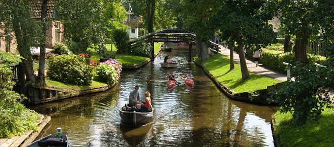 Giethoorn, un piccolo villaggio di 2600 abitanti, situato nella provincia di Overijssel, in Olanda, è un piccolo eden terrestre dove non esiste smog e inquinamento, non ci sono strade, dove si vive più sull’acqua che sulla terra e grazie ai suoi stretti canali ed 176 ponti immersi nel verde che la caratterizzano, è diventata negli anni una famosa destinazione turistica.