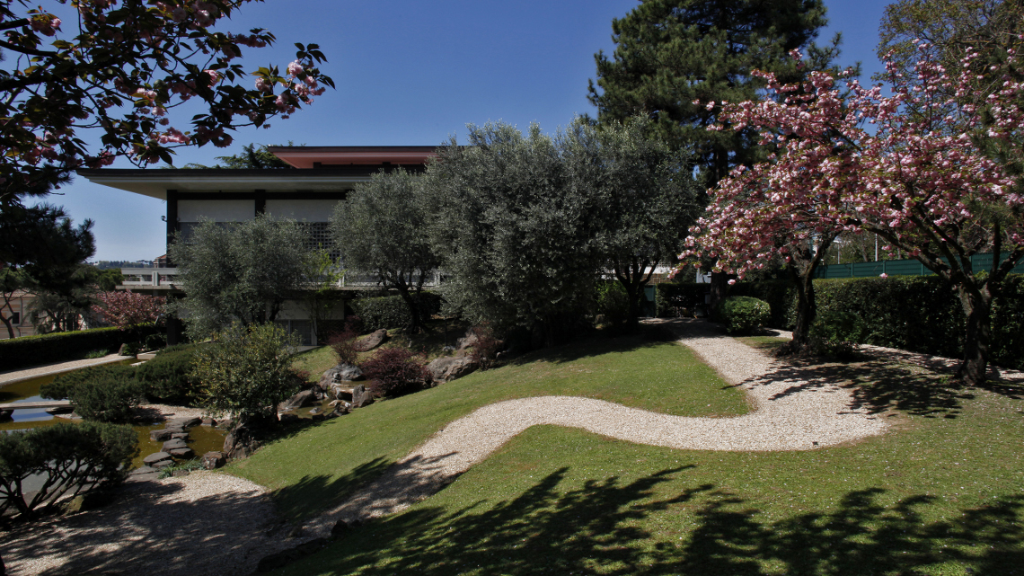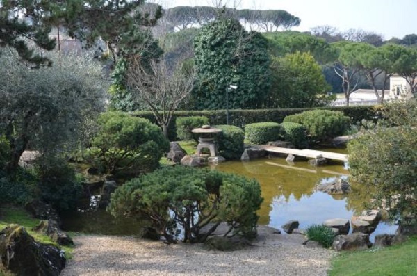 Un giardino colorato, situato nel cuore di Roma, all’interno dell’Istituto Culturale, a via Gramsci. Diviso in due spazi, uno progettato per la ricreazione e il piacere estetico degli imperatori e dei nobili, l’altro per per la contemplazione e la discussione filosofica dei buddisti. Per poterlo visitare occorre una pronta prenotazione e su richiesta vengono anche effettuate visite per i gruppi istituzionali. Il giardino è stato realizzato su terreno in concessione dal Comune di Roma secondo accordi diplomatici, dal noto architetto Ken Nakajima, responsabile anche del progetto per l’area giapponese presso l’Orto Botanico di Roma. Costruito da un architetto giapponese, gode di un fascino spettacolare che grazie anche alla ricca flora che lo anima. Tra le piante presenti si trovano il ciliegio, il glicine, gli iris e i pini nani. Compaiono inoltre tutti gli elementi essenziali e tradizionali del giardino di stile sen’en (giardino con laghetto), che ha raggiunto l’attuale splendore perfezionandosi attraverso i periodi Heian, Muromachi (XVI-XVII sec.) e Momoyama (fine XVII sec.): il laghetto, la cascata, le rocce, le piccole isole, il ponticello e la lampada di pietra, tôrô.