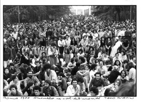 La mostra organizzata dal Centro Sperimentale di Fotografia Adams analizza dunque il rapporto tra arte, politica e ideologia e l’uso che i diversi gruppi all’interno del movimento facevano delle strategie artistiche, offrendo al pubblico romano il ritratto dell’umanità e degli eventi accaduti nel 1977, la storia di una generazione e di un paese che in questi quarant’anni ha cercato di rimuovere se stessa e quel movimento che aveva l’ambizione di cambiare il mondo, ma che in realtà si esaurì in breve tempo, e che oggi come ieri è ritenuto scomodo, pericoloso e devastante per gli assetti di potere e per questo spesso condannato e dimenticato.