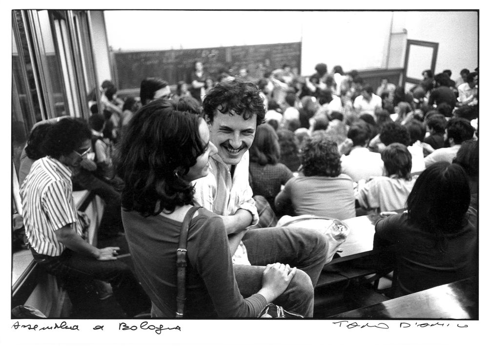 Per l’esposizione delle circa 200 opere il curatore Gabriele Agostini ha scelto di non seguire la sequenza cronologica degli avvenimenti di cronaca, ma di strutturare la mostra secondo aree tematiche in cui maturò e si formò il linguaggio del movimento del ’77, ovvero attraverso le facce dei suoi protagonisti, le feste, il rapporto uomo-donna, l’opposizione, la creatività urbana, gli scontri di piazza, la morte e il sangue. Ecco qui che allora le intense foto in bianco e nero di D’Amico offrono allo sguardo volti e sorrisi dei giovani di quell’epoca piena di ideologia e disincanto, fermando nel tempo momenti di storia come l’occupazione dell’Università, le manifestazioni studentesche, gli scontri con la polizia, le assemblee autonome, la cacciata di Lama da La Sapienza. Immagini affiancate dalle opere grafiche e dai fumetti d’avanguardia di Echaurren che nel ’77 diede vita ad OASK?!, il foglio dei cosiddetti indiani metropolitani, l’ala più creativa e libertaria del movimento, e ad altre numerose fanzine.