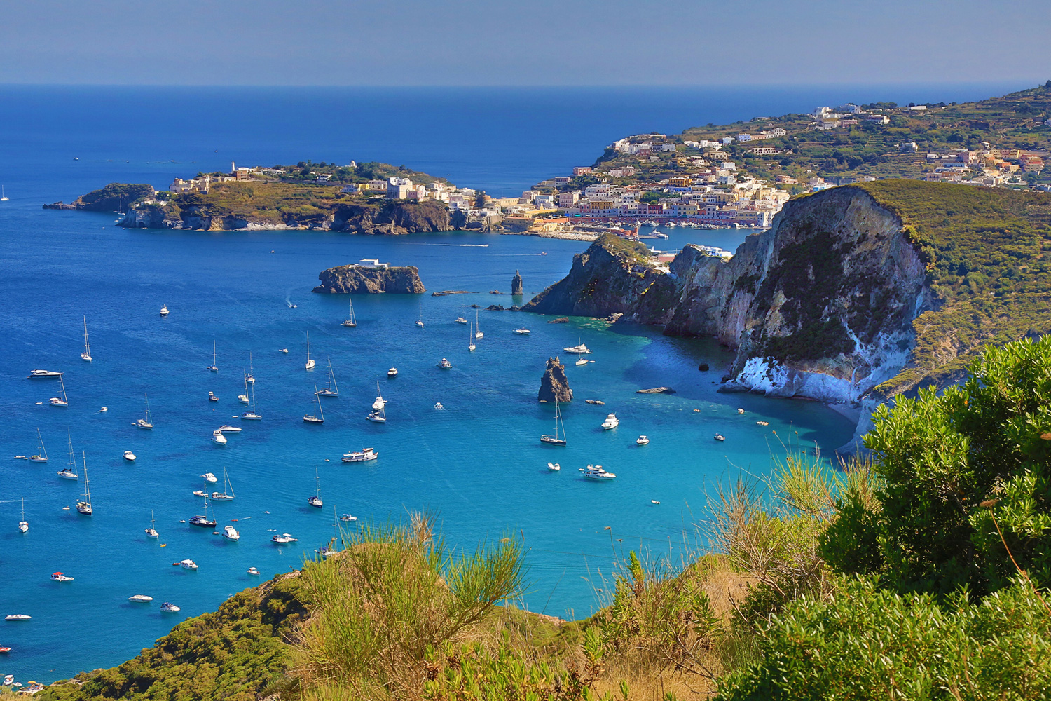 Ponza è la sintesi perfetta di ospitalità e bellezza, un mix di sapori e odori, di scenari sublimi e colori che oscillano dal rosso/rosa dei suoi tramonti all’azzurro cristallino delle sue acque, senza mai dimenticare le sue pittoresche case color pastello e le profumatissime ginestre.