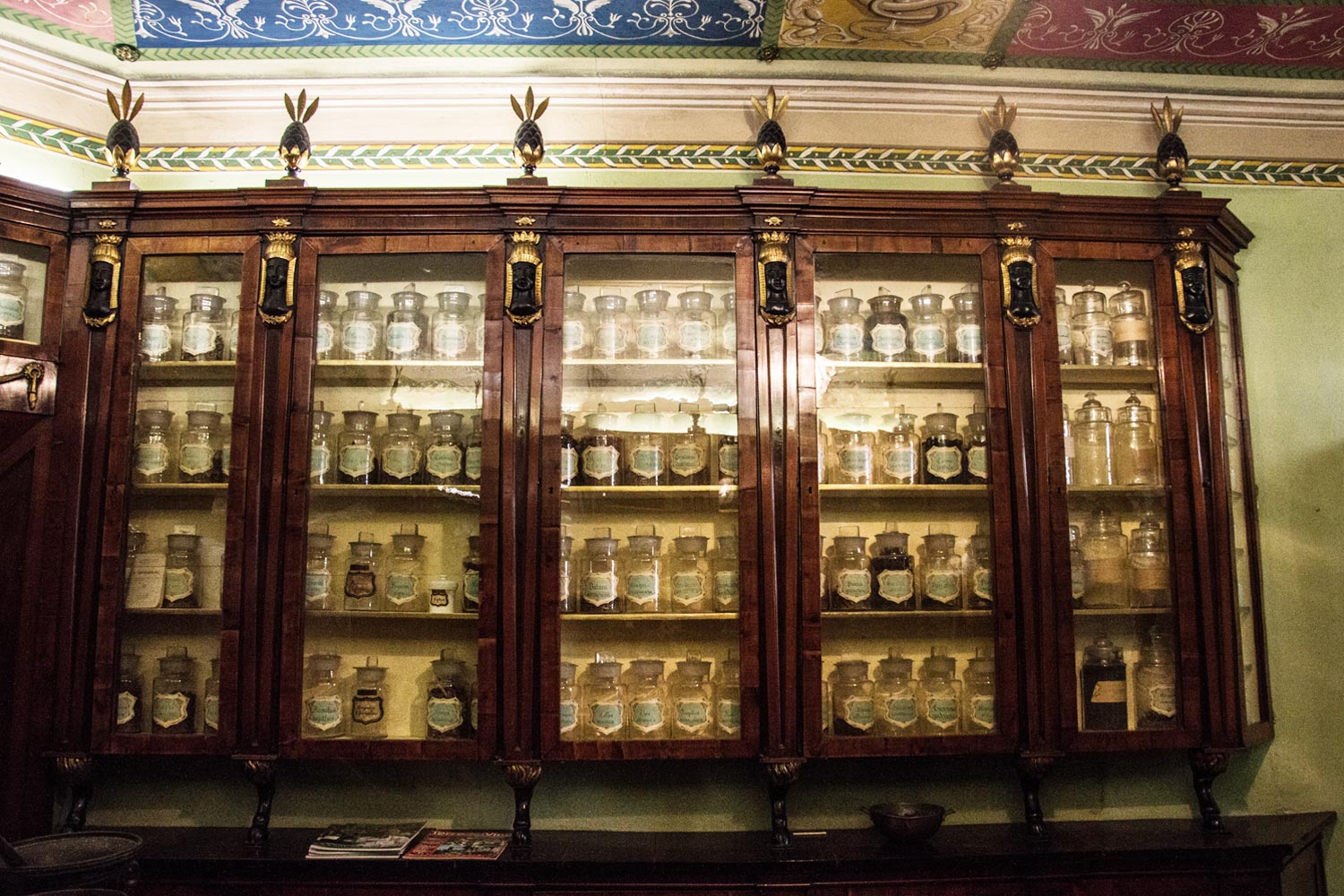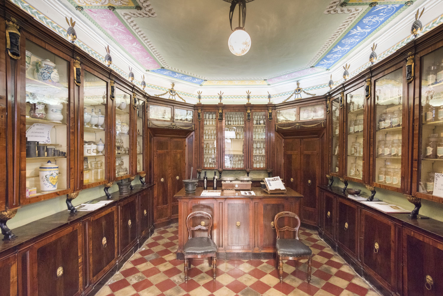 Fondata nel 1795 con il titolo “All’insegna di Sant’Agata”, quest’antica farmacia, situata a Siena, è rimasta intatta ed è visitabile attraverso la Farmacia De Munari, fondata da Francesco Francini Naldi. Questo noto alchimista e speziere del XVIII secolo, nascose all’interno della farmacia gli appunti di una ricetta, a base di erbe, radici e vino fortificato, il cosiddetto il vinpepato. L’antica faramcia, oltre ad avere un valore storico, ha anche un valore architettonico grazie al suo stile neoclassico e al mobilio caratterizzato da festoni d’oro e bassorilievi in stile egiziano. Il suo pavimento a mosaico policromo ad oggi è ancora meta di appassionati ed esperti da tutto il mondo. La farmacia sarà aperta al pubblico sabato e domenica dalle 10:00 alle 18:00.