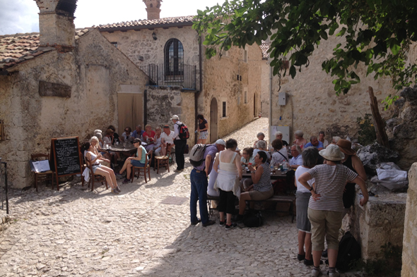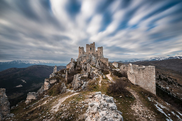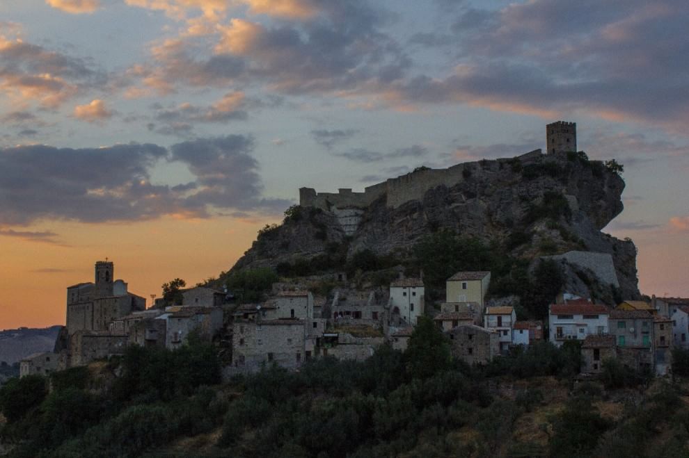 Calascio è un piccolissimo e antichissimo borgo di soli 127 abitanti della provincia dell’Aquila, appartenente al parco Nazionale del Gran Sasso e Monti della Laga. Il borgo, di origini normanne, presenta un territorio diversificato che va dalla foreste alle praterie, dai pascoli aridi alle altitudini più elevate, fino alle rocce calcaree del Gran Sasso. L’attuale Calascio non è altro che la fusione di due comunità: quella di Calascio e quello di Rocca Calascio ( nata intorno all’anno 1000 come torre di avvistamento per prevenire gli attacchi dei nemici). Per moltissimo tempo i due borghi hanno mantenuto la loro autonomia, con una propria funzione strategica, fino a quando nel 1703 un violento terremoto danneggiò la rocca che venne completamente abbandonata, trasformando quindi la sottostante Calascio nell’unico e vero centro abitato. Tra i monumenti più imperdibili: Il Convento di Santa Maria delle Grazie o chiesa di San Francesco che custodisce al suo interno un candelabro e un ciborio del XVII secolo, una tela dipinta da Giulio Bradeschini, risalente al XVI secolo e un dipinto raffigurante una Madonna con Bambino; la chiesa di Santa Maria della Pietà e la chiesa di San Nicola. Per quanto riguarda la Rocca, restaurata alla fine del XX secolo è stata più volte set di produzioni cinematografiche nazionali ed internazionali, nonché un’importante meta turistica.