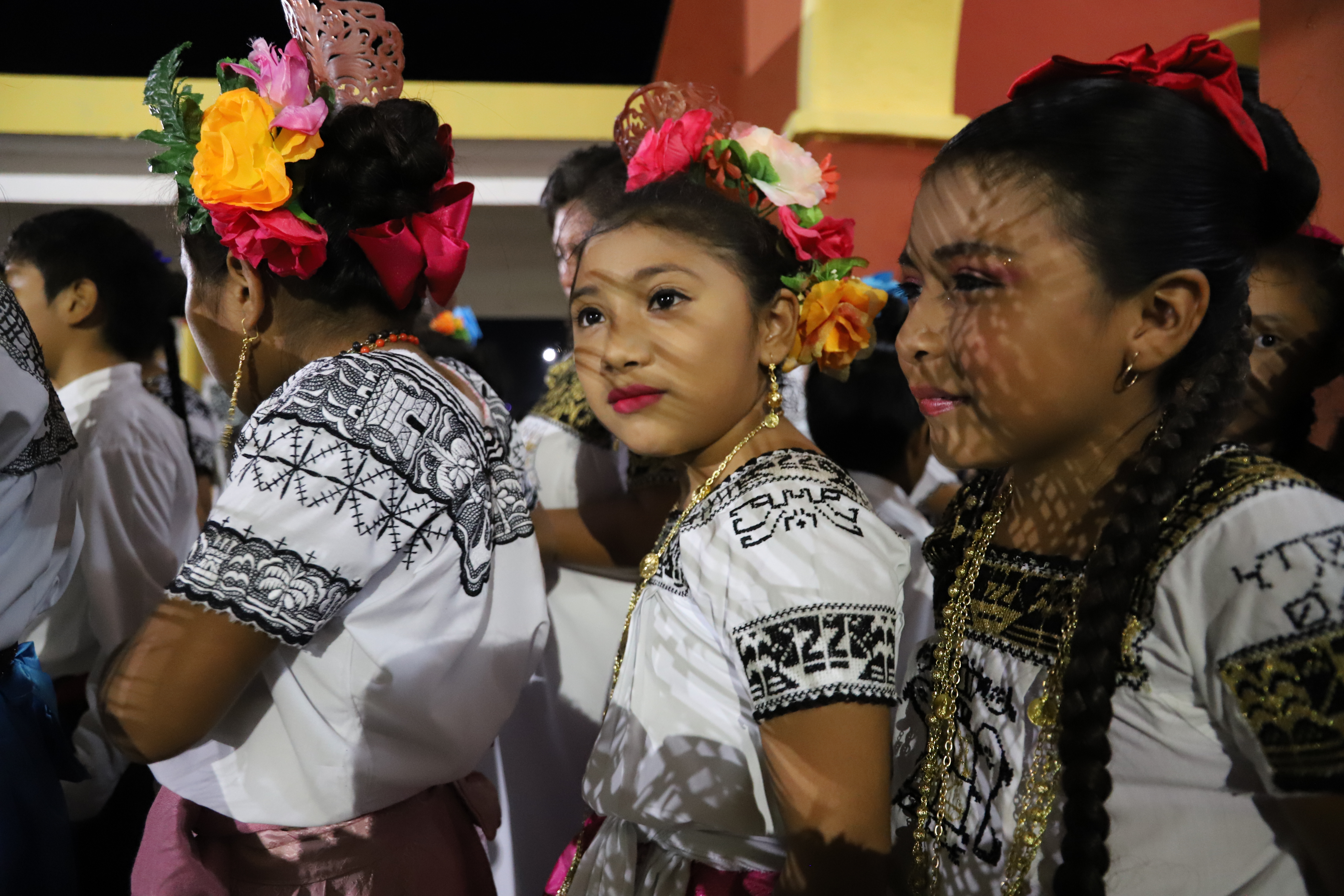 Un’altro tratto peculiare del dia de muertos a Pomuch sono i festeggiamenti riservati ai niños; i bambini sono soliti sfilare in parate molto simili a quelle che avvengono presso Città del Messico, gli abiti tradizionali che indossano sono molto colorati. Per l’occasione, oltre alla preparazione dei piatti preferiti dei defunti, in quanto gli spiriti, dopo il lungo viaggio dall’aldilà, saranno molto affamati e assetati, vengono preparati alcune pietanze tradizionali: il pan de muertos -pane dei morti- è un pane dolce, solitamente arricchito con semi di anice e decorato con ossa e teschi fatti di pasta. Talvolta le ossa vengono disposte in cerchio, ricordando così la circolarità della vita. Come bevande tipiche è possibile trovare la pulque, una bevanda fermentata ricavata dalla linfa dell’agave e l’ atole, un porridge caldo fatto con farina di mais, con zucchero di canna grezzo, cannella, vaniglia e cioccolata calda. A Pomuch viene realizzato un pane speciale, il pan de Muñeco –pane dei bambolotti-, fatto appositamente per i bambini.