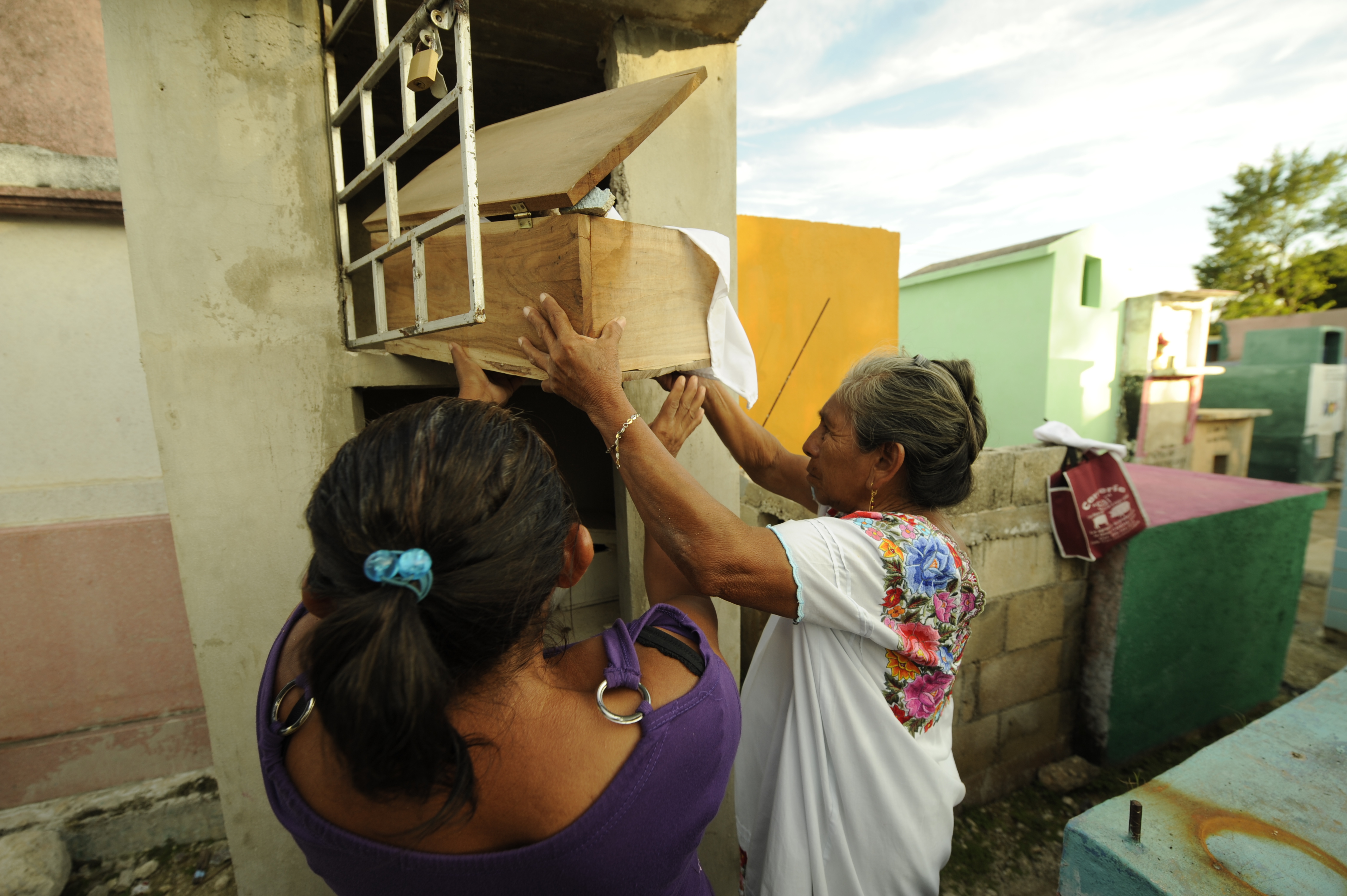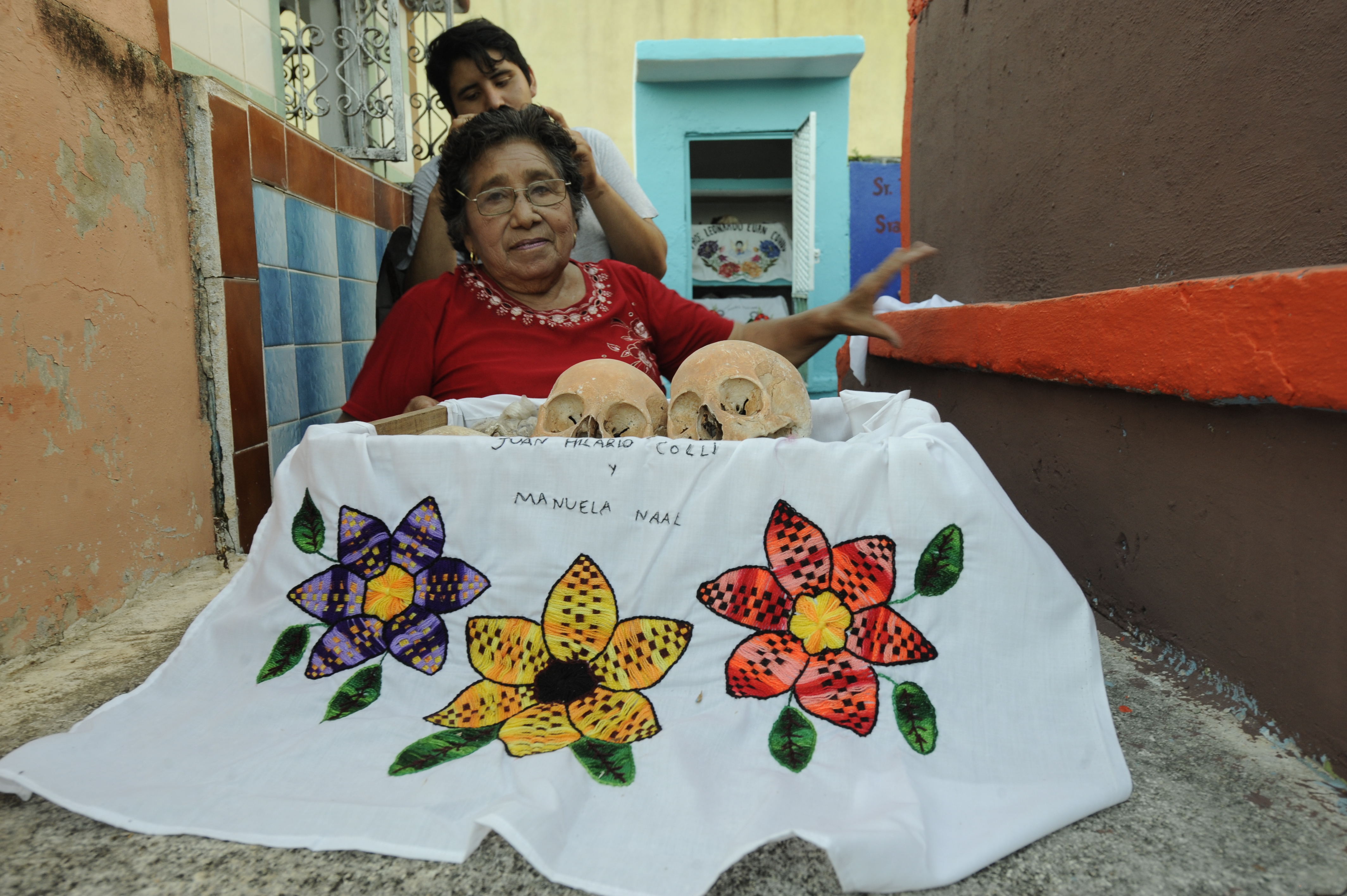 Le ossa vengono avvolte del tutto dalla tela ricamata e riposte in un ossario aperto, molto colorato e di modeste dimensioni proprio come gli antichi cimiteri Maya. Le spoglie dei cari riposeranno in questo luogo di celebrazione fino all’anno successivo, quando il telo ricamato verrà sostituito da uno nuovo e le ossa saranno nuovamente lavate.