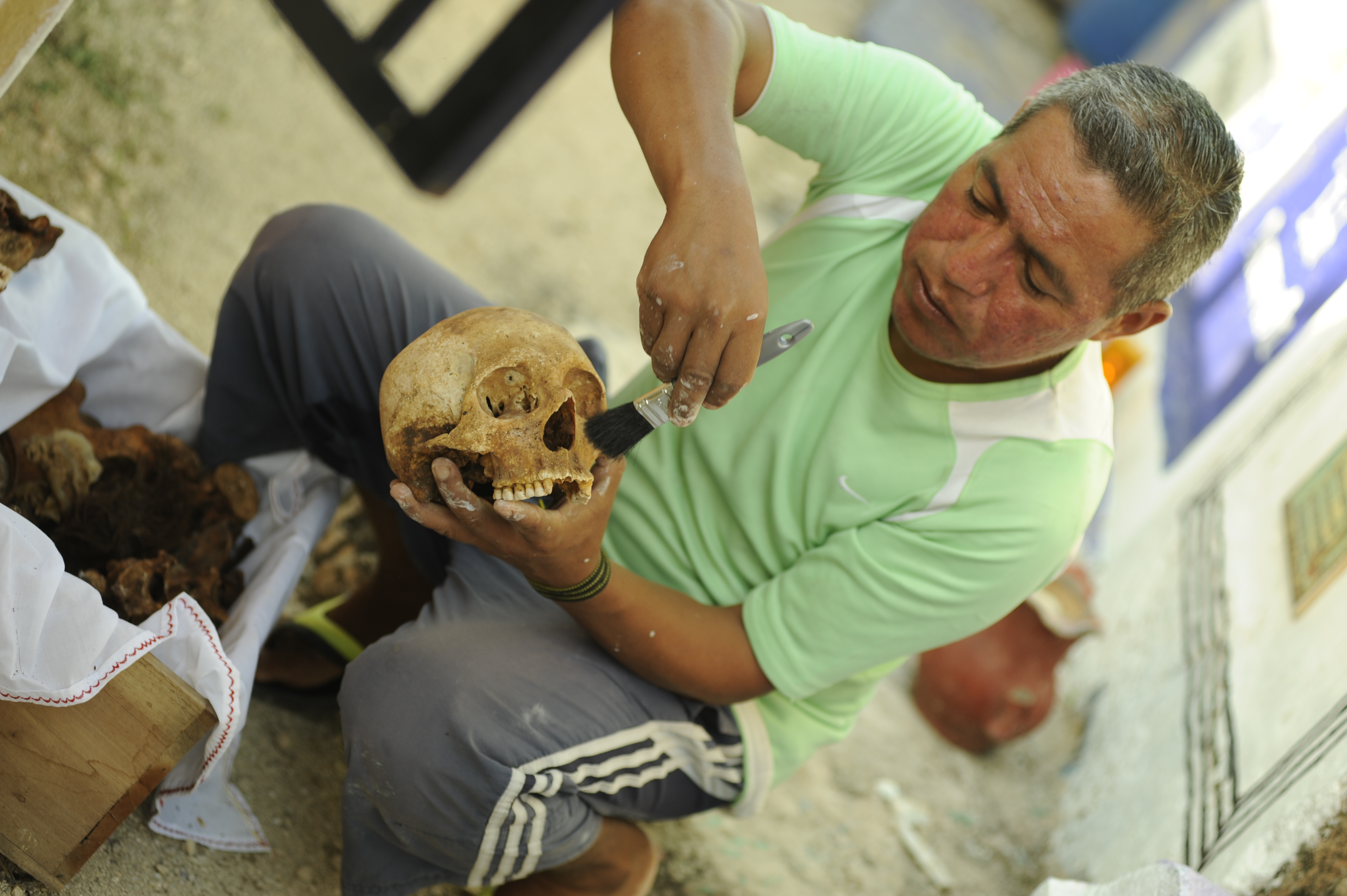Pomuch è una regione a nord di Campeche, culla dell’antica cultura Maya che si fa ancora sentire nelle tradizioni tutt’ora in vita. A Pomuch una settimana prima del dia de muertos si inizia la Limpieza de Huesos, ovvero la pulizia delle ossa dei propri cari. Alcuni anni dopo la morte della persona amata -solitamente 3 o 4-, quando ormai la carne si è decomposta, i familiari ricevono il permesso di riesumare le spoglie del defunto per tirarle a lucido; ad essere pulite non sono soltanto le ossa, ma tutta la città.